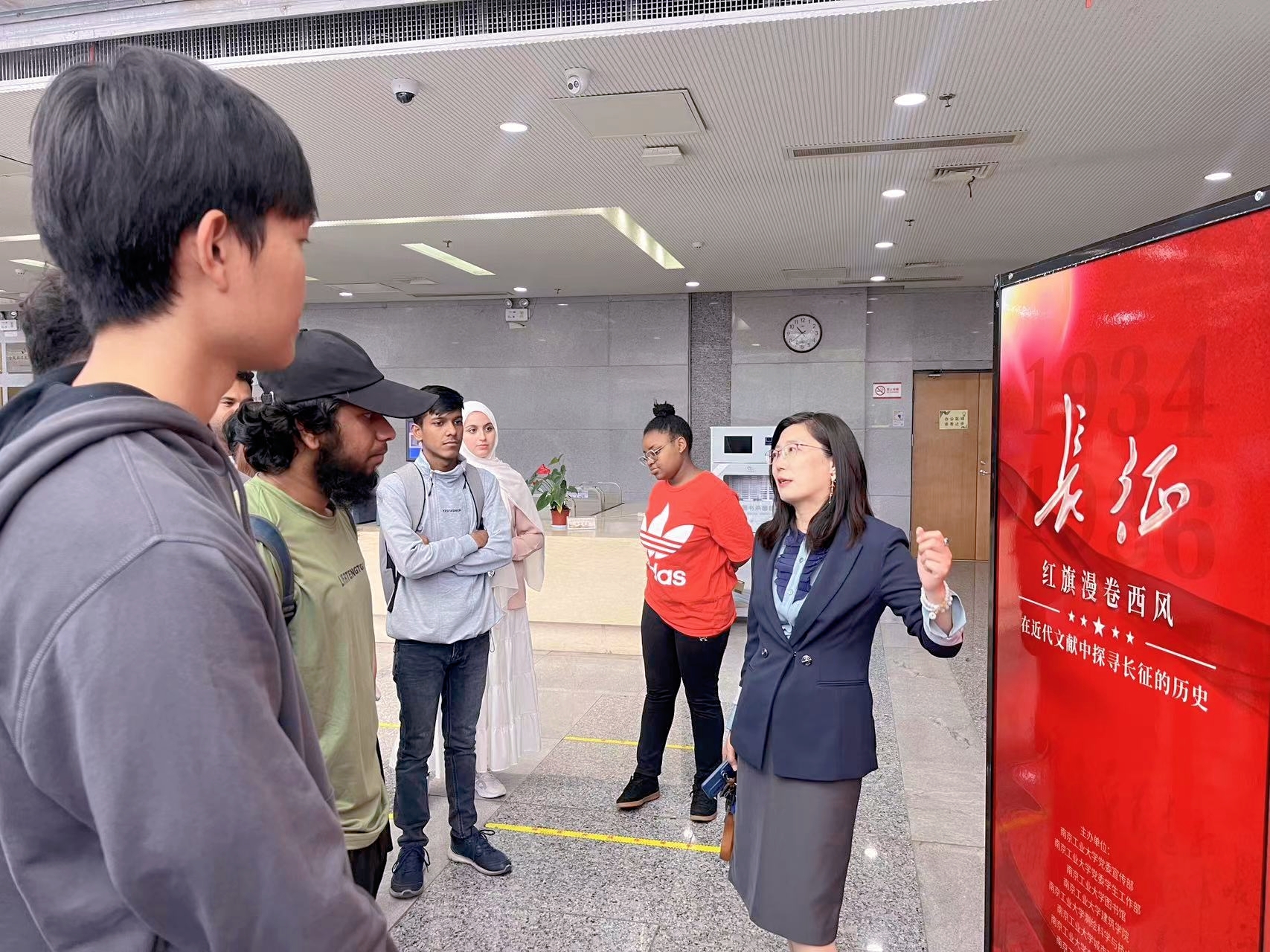 近日,由公司举办的《红旗漫卷西风——在近代文献中探寻长征的历史》主题展览在逸夫图书馆开展。430日上午,申搏sunbet组织来自西班牙、印度尼西亚、泰国、孟加拉国、摩洛哥等国的20余名来华职工到现场观展,深刻感受中国历史革命的红色基因和精神谱系。