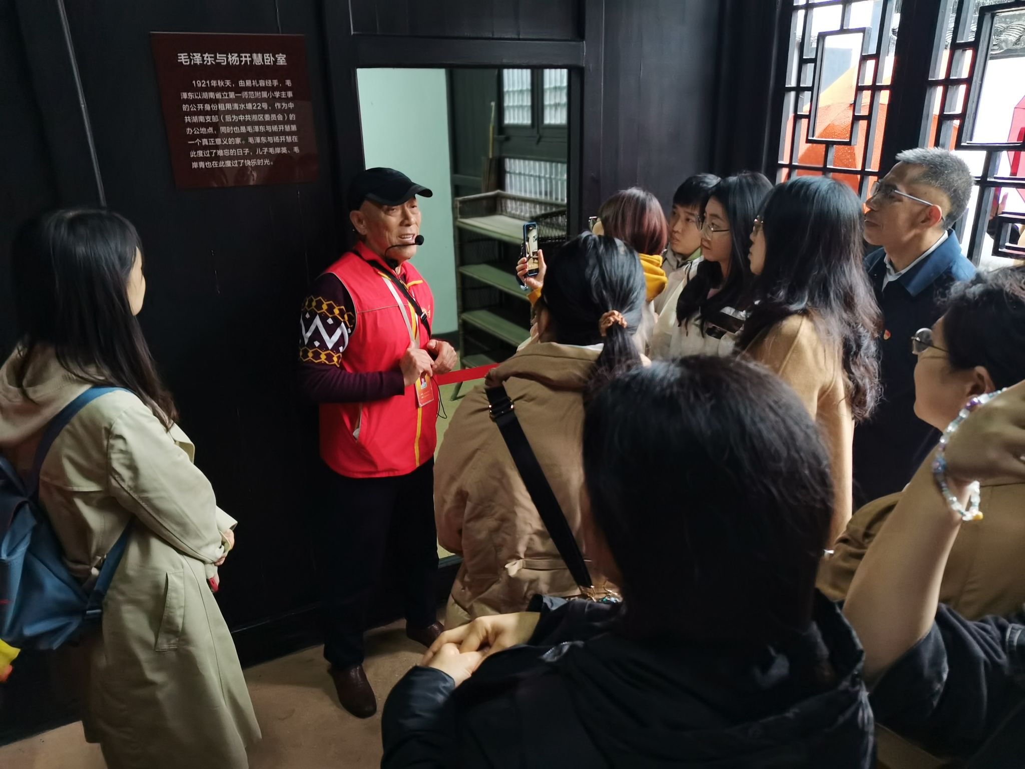 在长沙,全体党员先后参观了中共长沙历史馆、湖南党史陈列馆、橘子洲头、岳麓书院等红色教育基地。在志愿者易复刚老先生的讲解下,大家感受了长沙的红色情怀并在重温红色记忆中传承红色基因,观看了“敢教日月换新天”为主题的中国共产党湖南历史陈列,深入了解党的湖南发展史与艰苦奋斗的历程。在橘子洲头,尽管西风凛冽、寒意刺骨,但大家仍旧怀着无比崇高的敬意瞻仰毛主席青年艺术雕像,通过雕像创作背后的故事,明白了革命先辈为伟大祖国所奉献的一切,也更加历练了大无畏的革命乐观主义精神。在湖南大学,大家通过图片、文物等资料了解了岳麓书院从古至今的发展历史、领略其独特魅力。