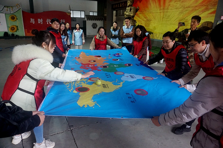 在拓展训练中,参与人员被分成两个团队,大家团结一致、齐心协力,完成了团队组建、挑战五分钟、旱地冰壶等多项训练项目。两队队员集结智慧、相互配合、携手共进。虽然天气阴冷,但大家热情高涨、活力无限,欢呼声此起彼伏。经过几轮竞技比拼,所有团队圆满完成了各拓展项目,并共同总结经验教训,分享成功的喜悦和激情。