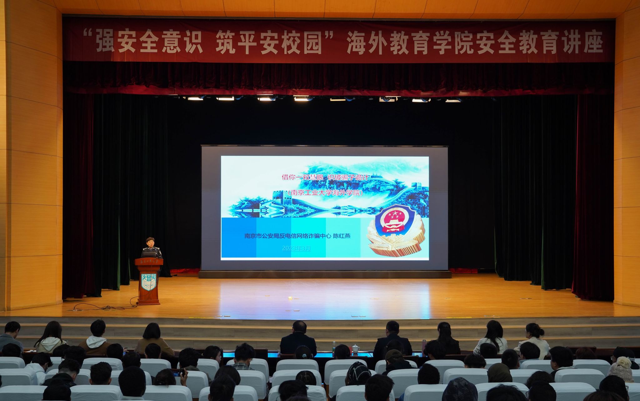 为加强员工安全防范意识,增强反诈能力,维护网络意识形态安全,创建安全和谐校园,申搏sunbet于3月29日下午在博雅堂举办了以“强安全意识 筑平安校园”为主题的安全教育讲座。本次讲座邀请到南京市公安局刑警支队反通讯网络诈骗侦查大队三级高级警长陈红燕,南京市公安局出入境管理支队中国公民出国境受理大队副大队长李和钦。公司党委保卫处副处长李智、公司副经理朱丹、全体辅导员、全院1200余名中外同学参加讲座。讲座由公司副经理朱丹主持。