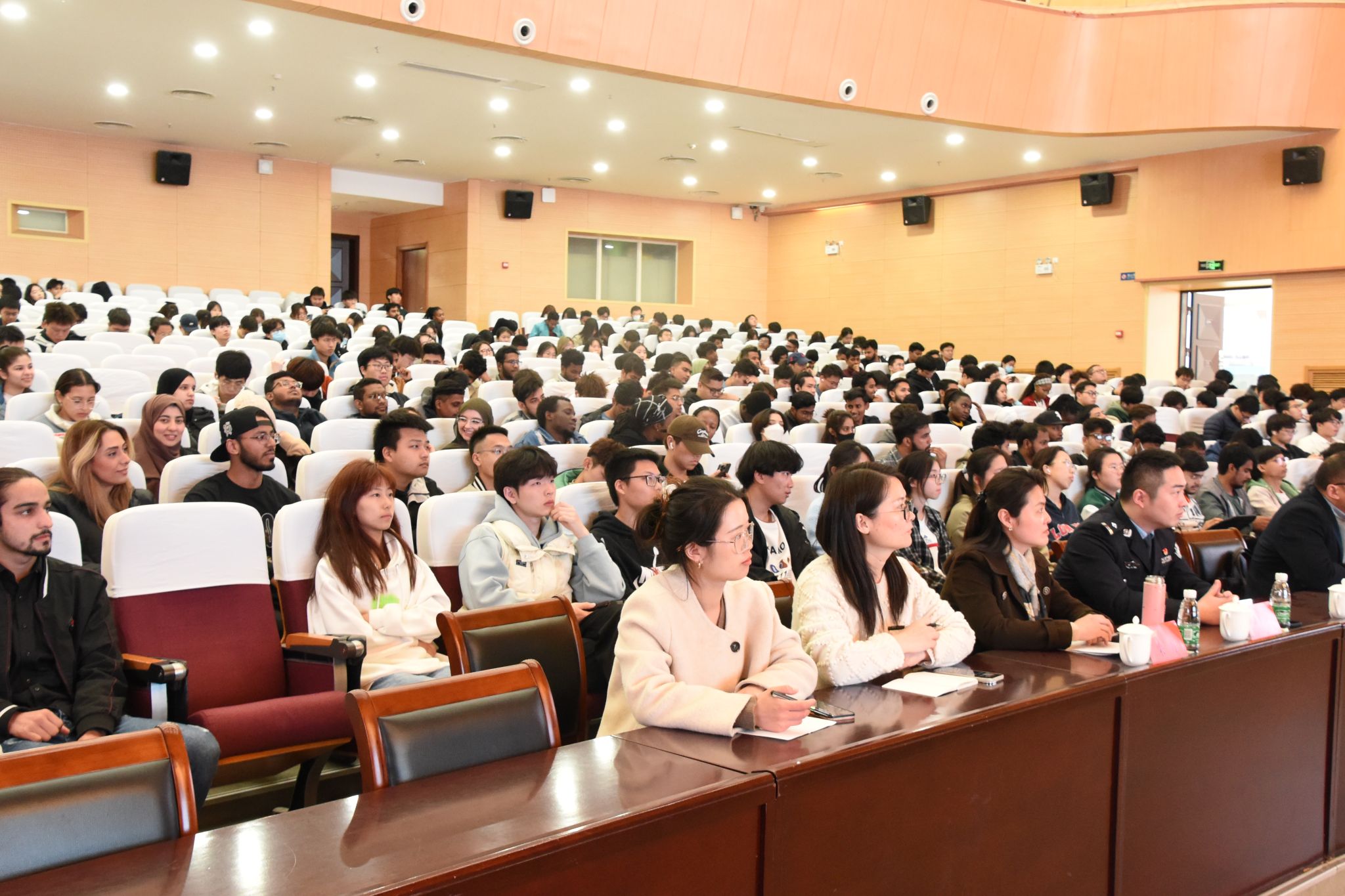 陈红燕高级警长从当前网络诈骗形式、结合驻宁高校发生的电信诈骗真实案例给同学们上了一堂生动的防诈反诈课。李和钦副大队长从网络意识形态安全、护照办理、出入境等方面进行了细致的指导。