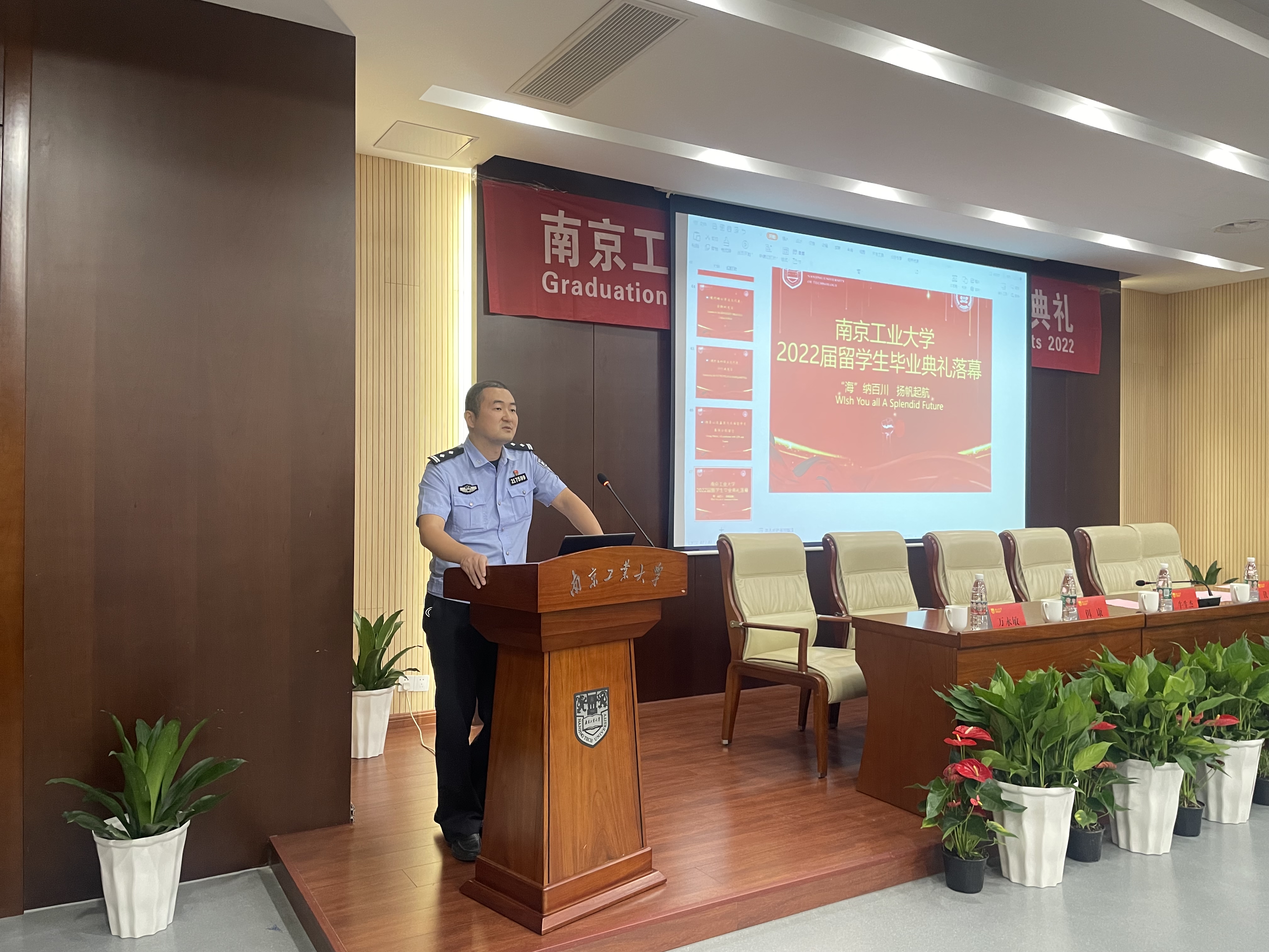 随后,吴越警官向职工介绍了中国相关法律,强调了职工在中国学习、生活、旅游等等需要注意的事项,并且提醒各位职工要保持头脑清醒谨防被骗。