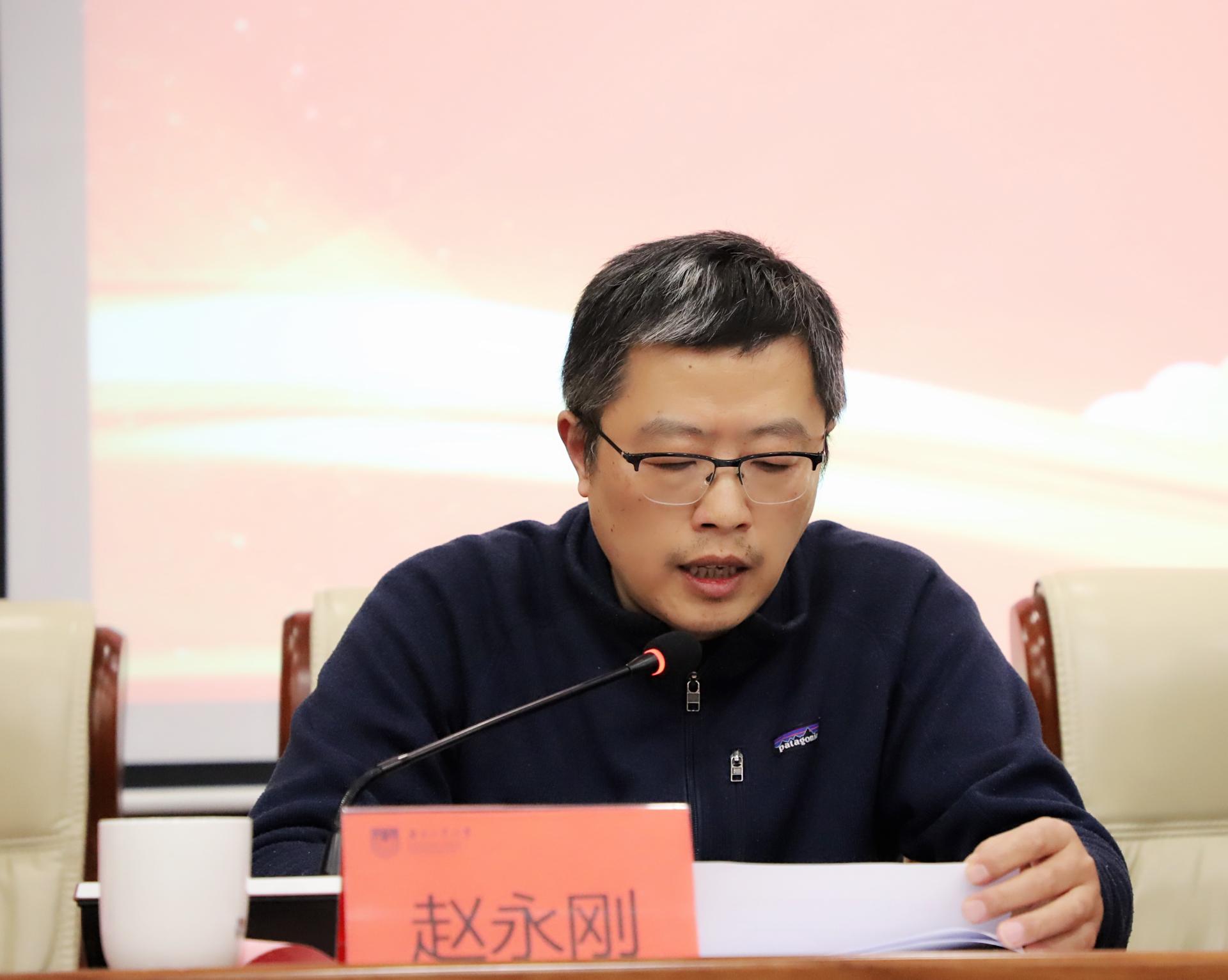 副经理赵永刚宣读《申搏sunbet关于2021年度获得校级及以上员工先进集体和先进个人的表彰决定》和《申搏sunbet关于2021年度员工先进集体和先进个人的表彰决定》。
