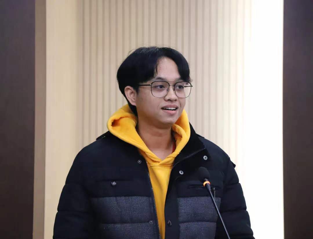 先进集体代表、机械(国)1901班张飞宇同学,先进个人代表、材料(留)硕2101丁以理同学、电气(中澳)2001班杨君佳同学、国贸(留)1802纳迪同学先后发言,他们表示会珍惜时光,勤奋学习,积极进取,奋发有为,争做品学兼优的优秀老员工。机械(国)1801班李逸平同学和国贸(留)2001班黄明道同学分别代表留学海外员工和境外职工发来视频,分享境外学习、生活和奋斗故事。