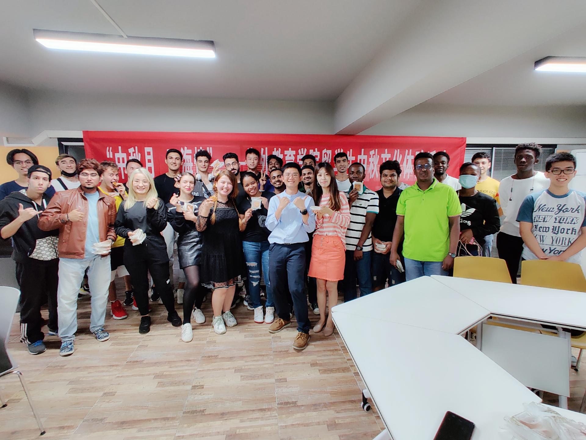 来自哈萨克斯坦、多哥、埃塞俄比亚、印度尼西亚、孟加拉等十多个国家的职工欢聚一堂、共度佳节。活动伊始,公司教师从“后羿射日”、“嫦娥奔月”等中国古代神话传说入手,介绍了中秋节的来历,带领职工了解中秋文化习俗。公司还专门为他们准备了带有校徽印记的月饼。职工们纷纷将自己的心愿与节日的祝福写在纸条上,中国员工也为职工写下了美好的寄语和祝福,中外员工相互交流,传递友谊。在境外的职工们通过直播参加活动。