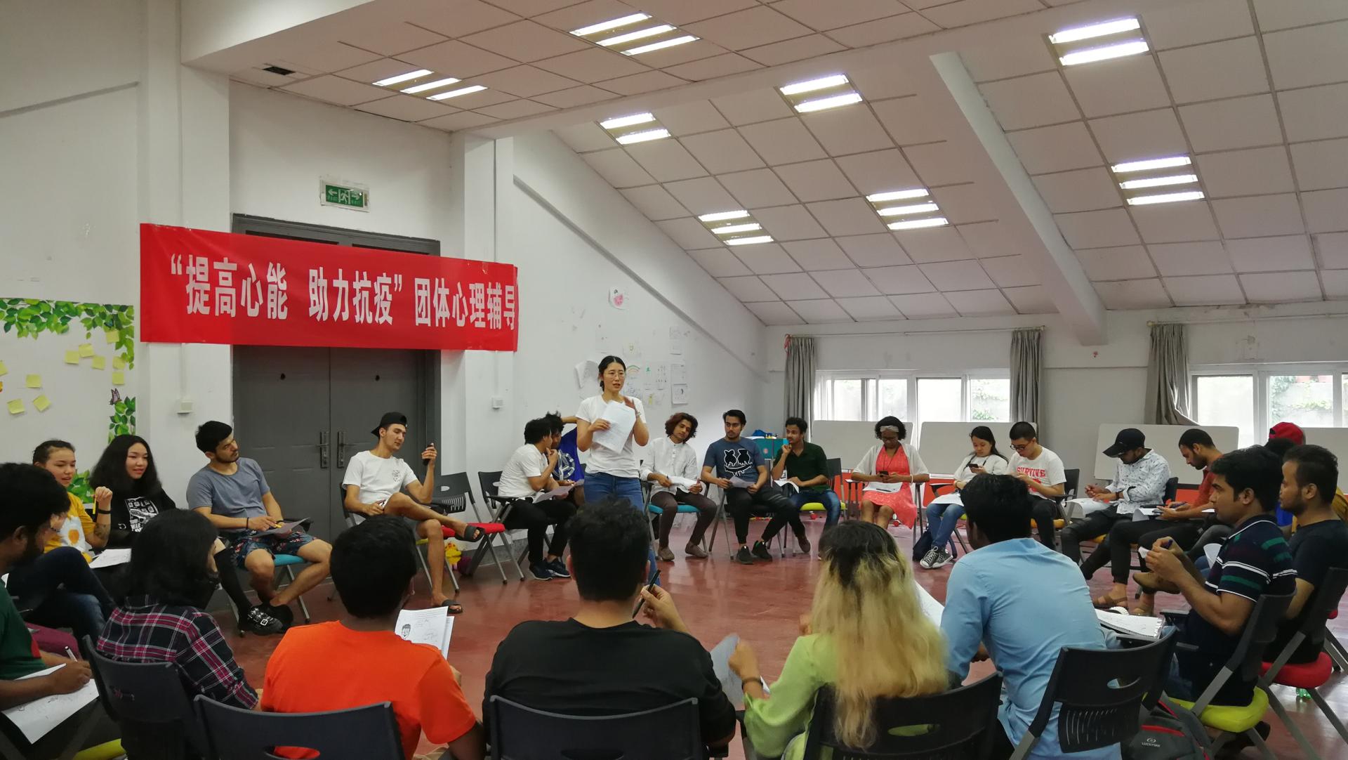 在心理健康教育指导中心陈珝老师、职工辅导员金薇老师的带领下,30名职工以团队形式参与活动。活动分四个环节,以游戏和口语表达等方式开展。来自孟加拉的安努在解压方案环节即兴创作了绘画作品,配以声情并茂的解说,调动了其他同学的参与热度;来自乌兹别克斯坦的迈克一改平日里的内向沉默,在活动中变得乐于展现自我,积极与他人交流;学习成绩优秀的阿里和研究生马苏在头脑风暴环节思路清晰,逻辑缜密,使小组讨论收获满满。