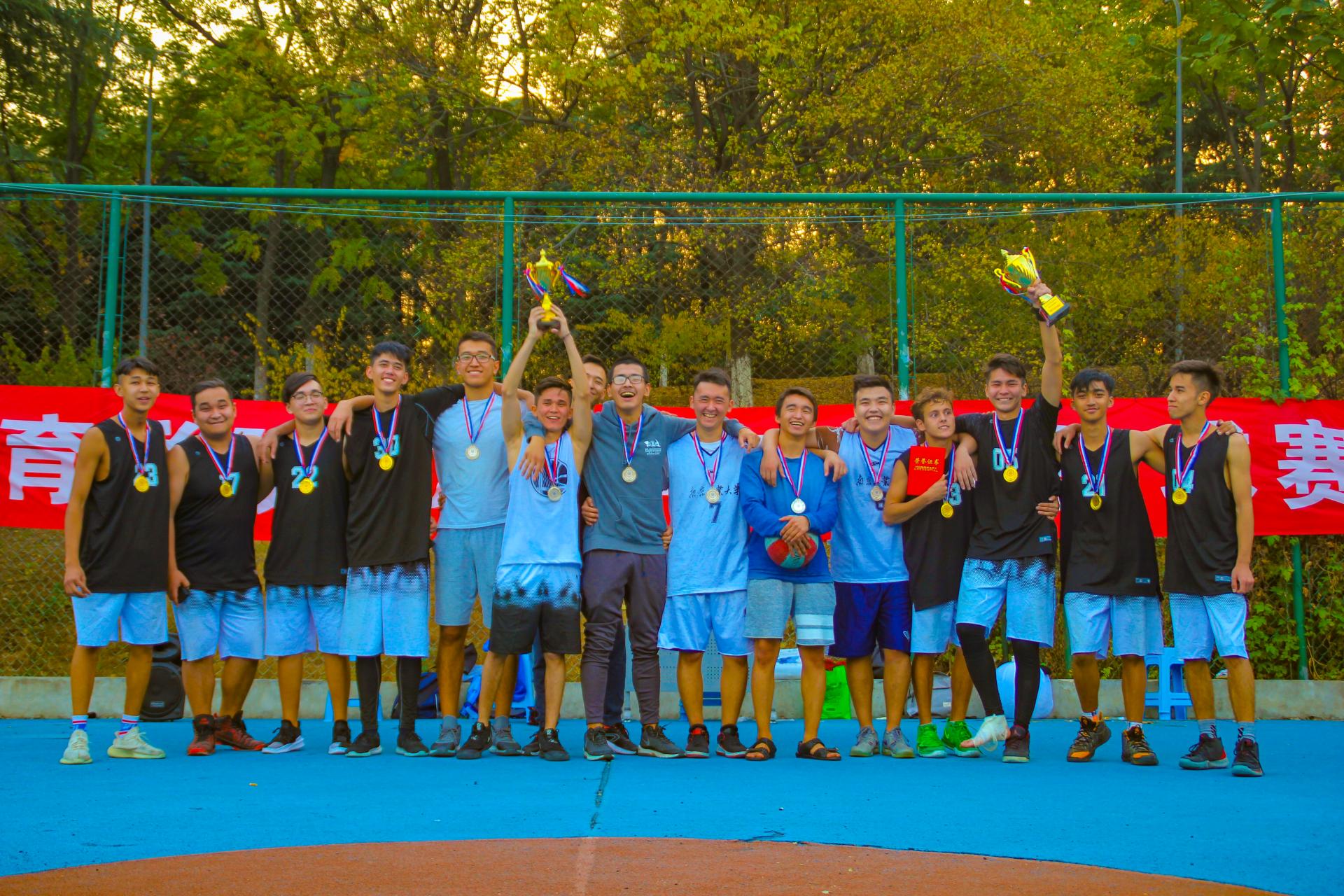 比赛分为预赛和决赛,共进行了7场比赛。球场上的气氛紧张而热烈,队员们都展现出了较好的竞技状态,勇猛的拼抢、默契的传球、漂亮的上篮、完美的配合让比赛高潮迭起,在场观众爆发出阵阵喝彩!最终,大一年级代表队凭借出色的表现摘得桂冠,来自乌兹别克斯坦的阿兰同学获得了“最佳球员”的荣誉称号。