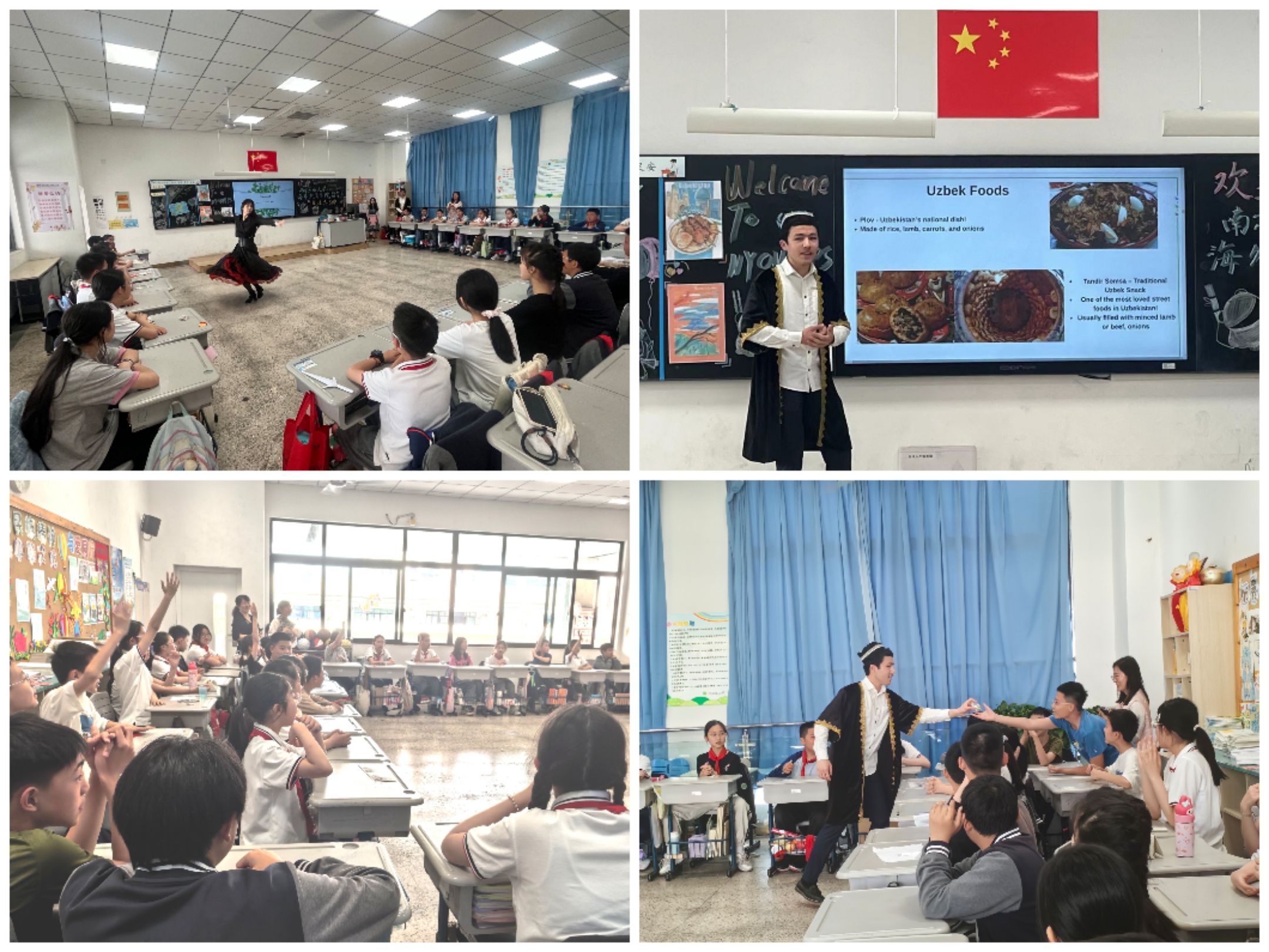 来自乌兹别克斯坦的职工碧娜以一支热情奔放的Flamenco舞蹈点燃全场,旋转的裙摆与跃动的舞步瞬间将师生带入中亚风情之中。随后,李强同学通过精心制作的PPT,带领大家“云游”这个双重内陆国的千年文明:从丝绸之路重镇布哈拉的砖雕艺术,到纳乌鲁孜节春日庆典的欢声笑语;从囊坑烤馕的独特工艺,到传统刺绣服饰的斑斓色彩,每一个细节都引发阵阵惊叹。在互动竞猜环节,“乌兹别克斯坦的国花是什么?手抓饭的核心调料有哪些?”等10个趣味问题引发激烈抢答,答对的小员工纷纷惊喜地收获了乌兹别克斯坦国的特色冰箱贴。
