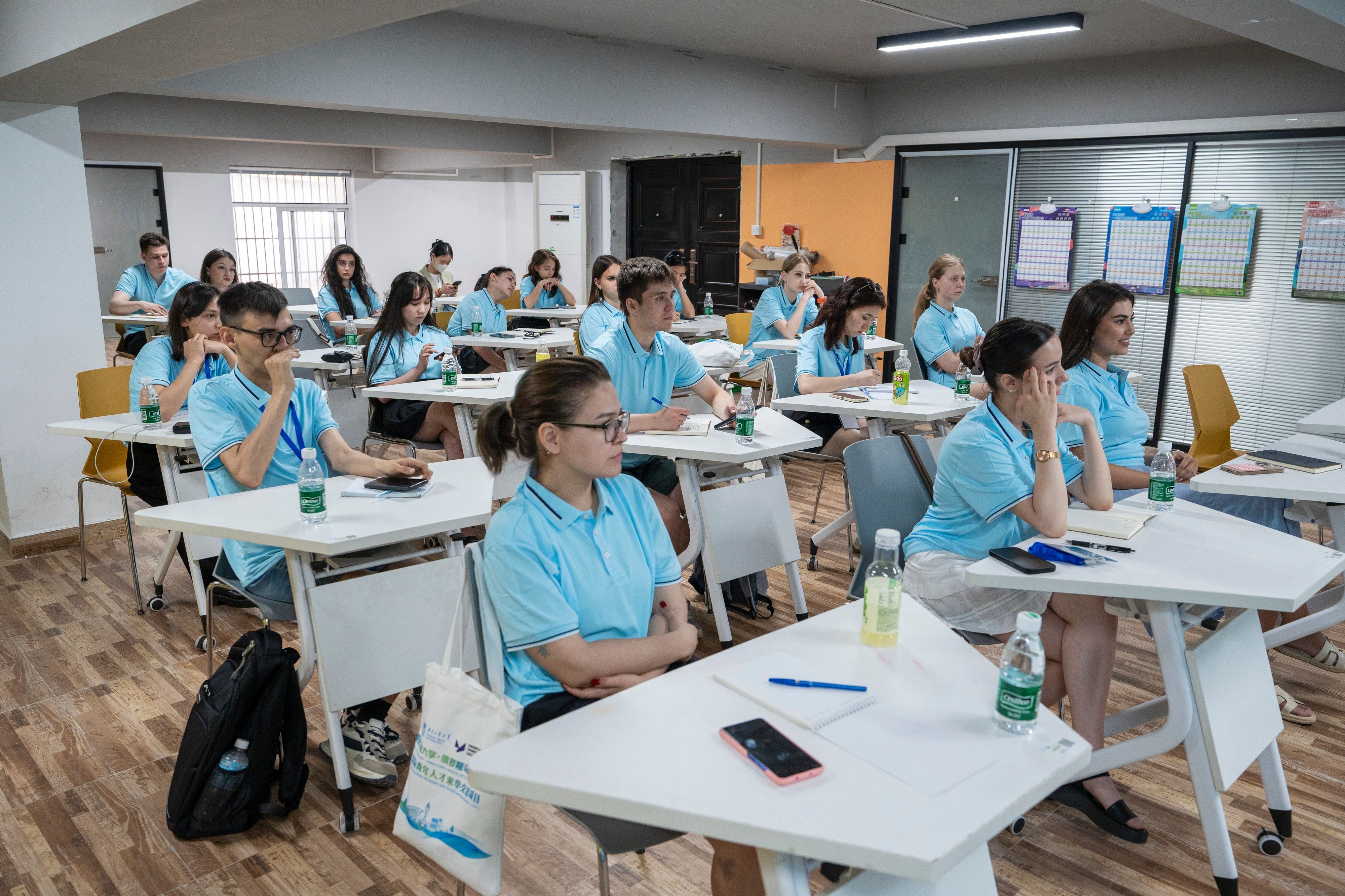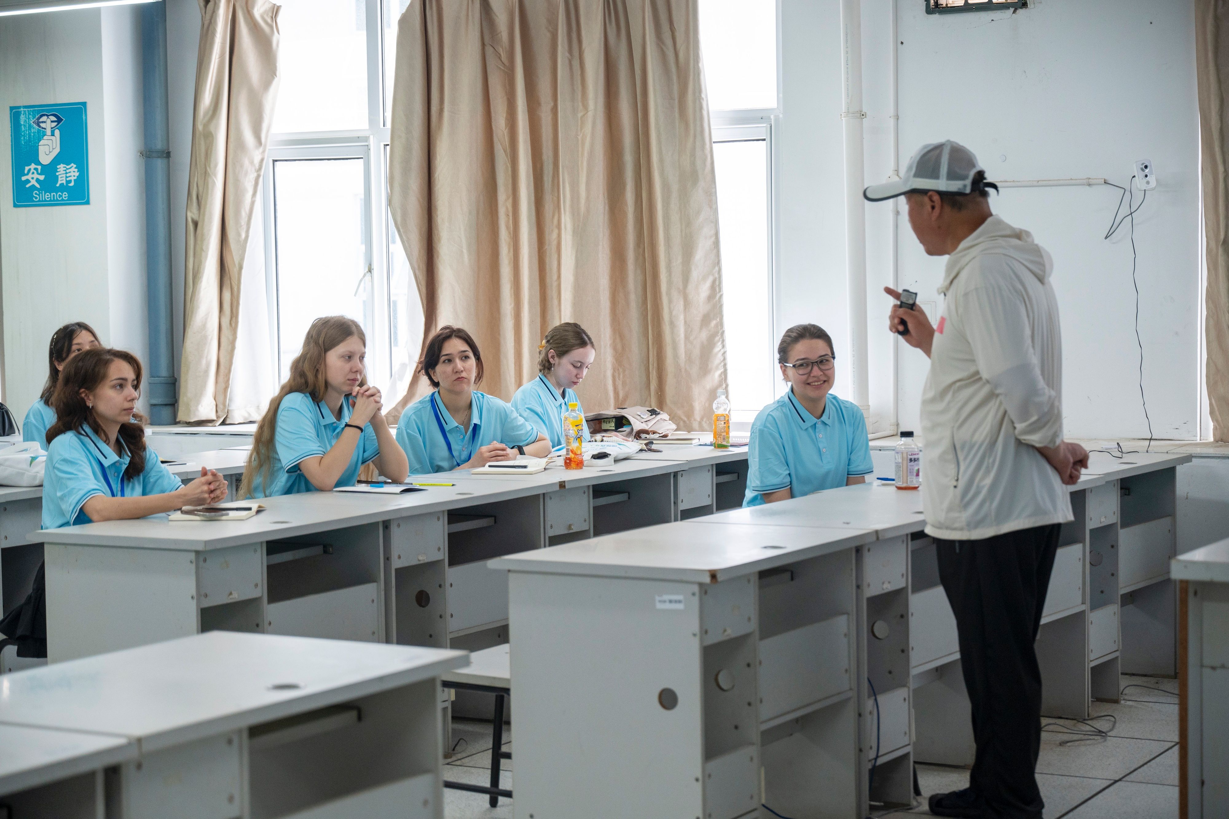 此次项目围绕“汉语学习、学术讲座、文化体验和科技实践”四大板块展开。在“汉语学习”方面,课程涵盖中国汉字演变、古诗词鉴赏、句型结构解析等,助力学员构建系统化汉语知识体系。“学术讲座”聚焦科技创新与绿色发展主题,深入解读中国发展模式。“文化体验”环节通过汉服、太极、剪纸等传统文化活动,结合南京历史文化参观,引导学员沉浸式体验中华文化魅力。“科技实践”板块组织学员参访"丝路云仓"(数字贸易)、睿悦信息(VR技术)、亿维特航空科技等企业,多维度实地了解中国科技创新成果。