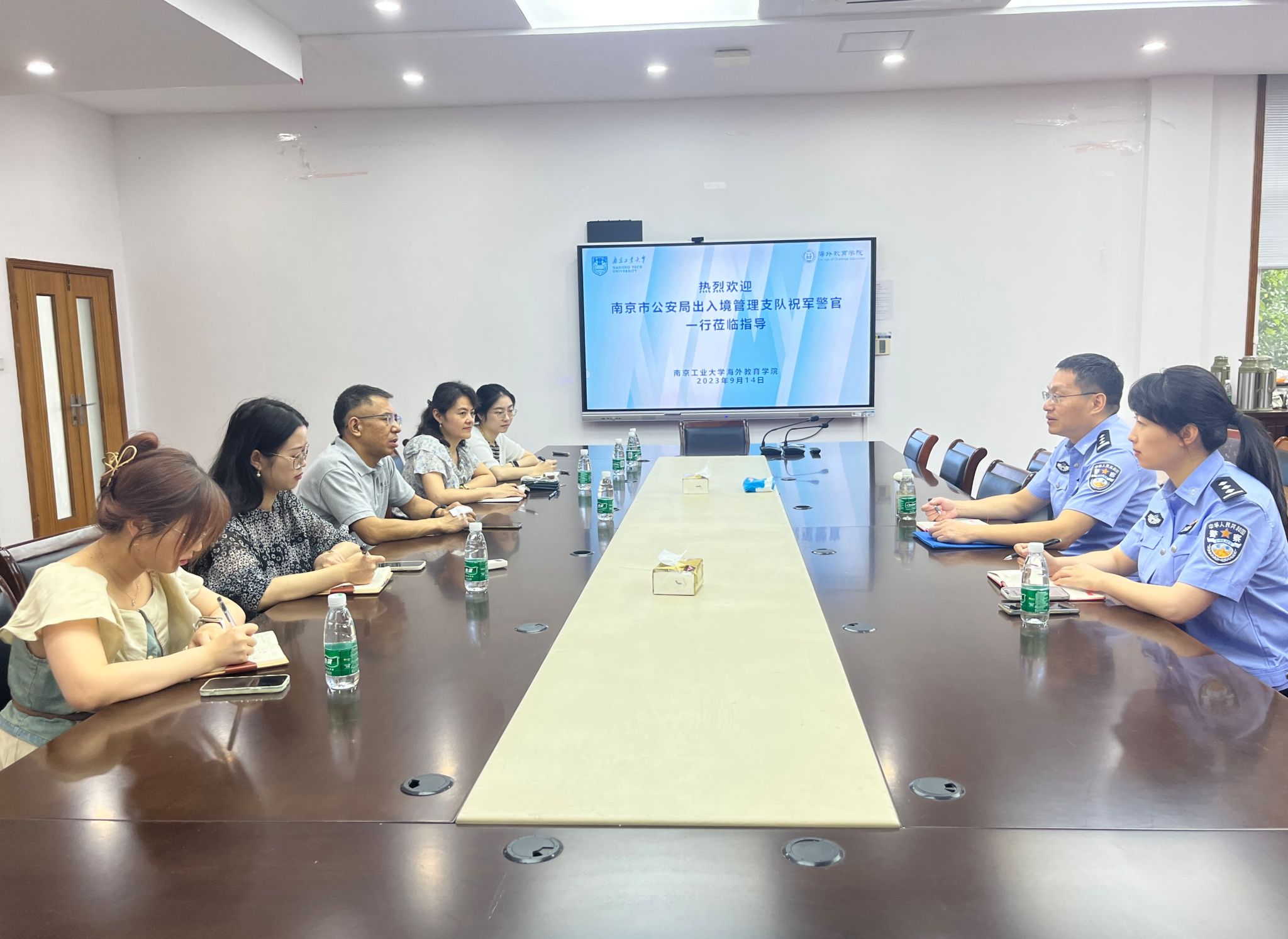 9月14日上午,南京市公安局出入境管理支队祝军警官、林楠警官莅临申搏sunbet指导工作,并对公司来华职工基本情况进行调研。海外教育公司党委书记万永敏、副经理朱丹及职工管理相关工作人员参与会议。