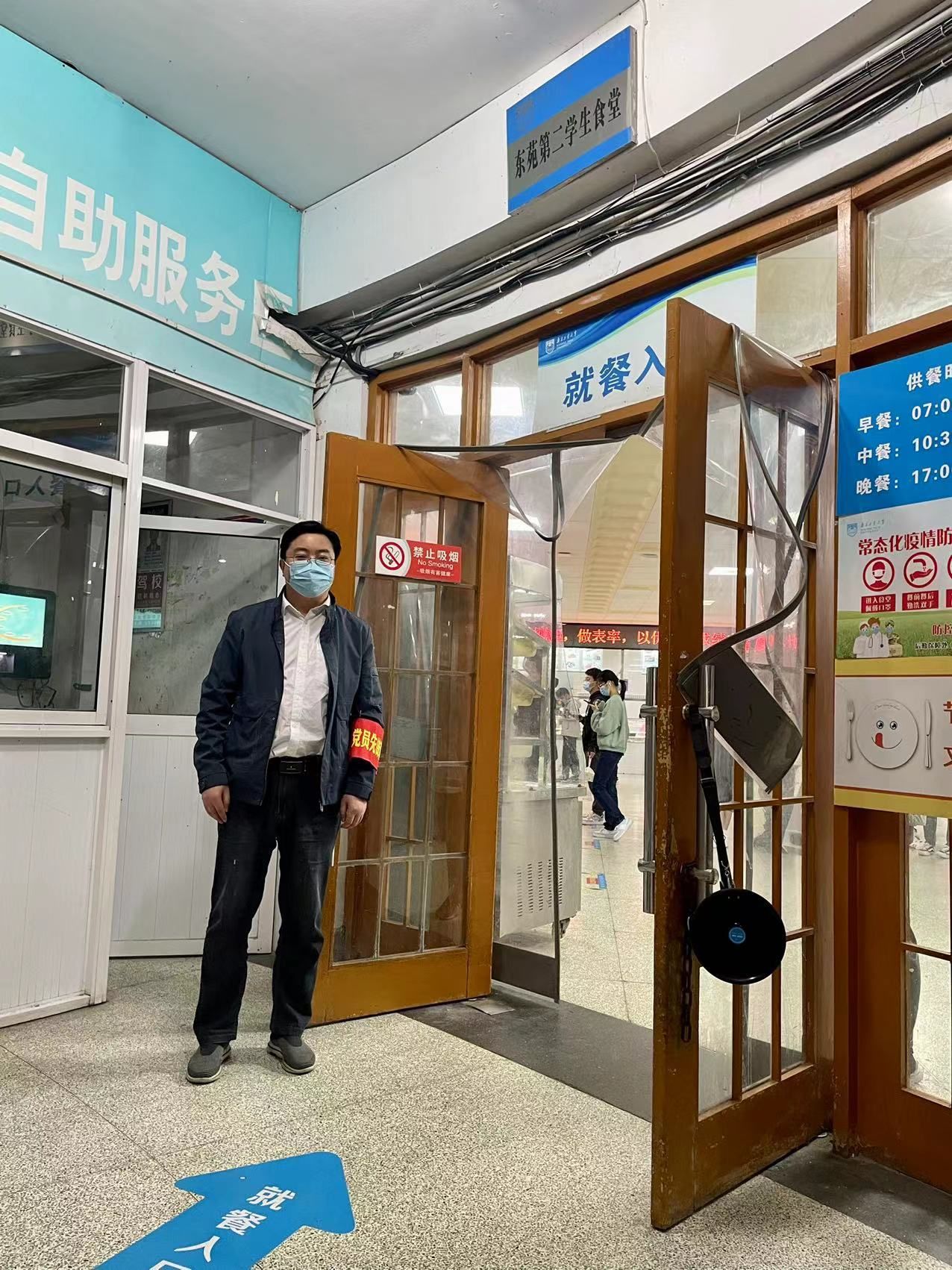 王经理在公司疫情防控志愿服务组负责东苑食堂1楼值班