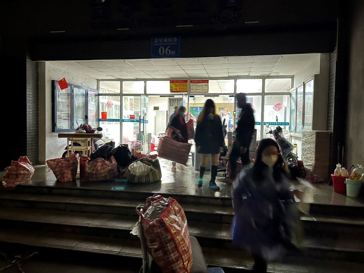 1026日晚9许,接公司紧急通知,景星苑6栋职工宿舍被临时征用为隔离点。院职工管理团队第一时间制定工作方案,1小时内完成在校职工宿舍的调整安排及新的网格化管理方案,辅导员们随即深入宿舍,将动员工作落实至每位职工27日一大早,辅导员们就将连夜准备的打包袋、小推车等物资送到职工宿舍,协助职工进行搬迁。27日下午2点,原先有序的搬迁工作被突如其来的静默通知叫停,辅导员第一时间将通知传达到每一位职工,将所有职工都安抚在宿舍内,同时自己也化身“大白”协助防疫人员走入宿舍为职工做核酸检测。27日晚,在团队的精心组织和协助下,职工的搬迁工作在细雨中继续进行,直至28日凌晨1点半才全部结束。28日大清早,团队成员们拖着疲惫的身躯又回到了景星苑6栋,协助集团后勤保障处完成了两百余名境外员工行李的打包、归置,为景星苑6栋作为公司隔离点在当天的投入使用赢得了时间。