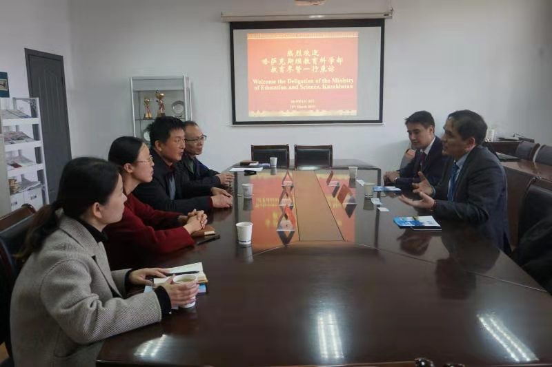 会谈中,牛生杰副董事长对Suleimenov Berik一行的到访表示热烈欢迎,他介绍了公司的整体情况与学科优势特色以及职工工作的主要情况,并希望进一步增进公司与哈萨克斯坦高校的教育交流与合作。