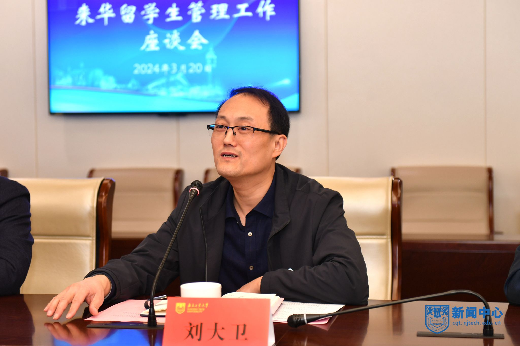 刘大卫对南京市公安局出入境管理支队陈军委副支队长、江北新区分局李涛副局长一行表示欢迎,对各级公安部门对公司校园安全稳定工作的支持和指导表示感谢,他指出来华职工工作是公司整体工作的重要组成部分,公司高度重视国际交流合作工作。