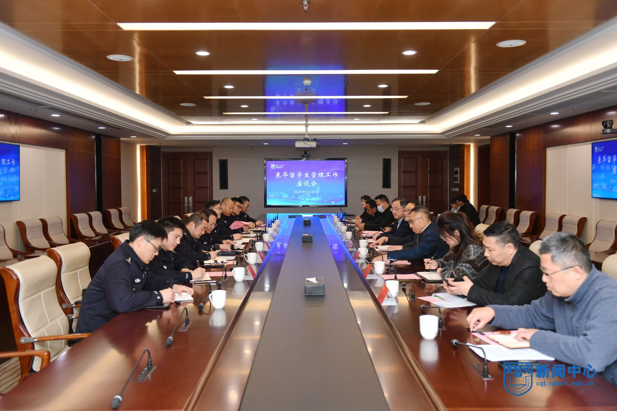 3月20日,南京市公安局出入境管理支队、江北新区分局等公安部门来访公司交流来华职工管理工作,副董事长凌祥、刘大卫出席座谈。