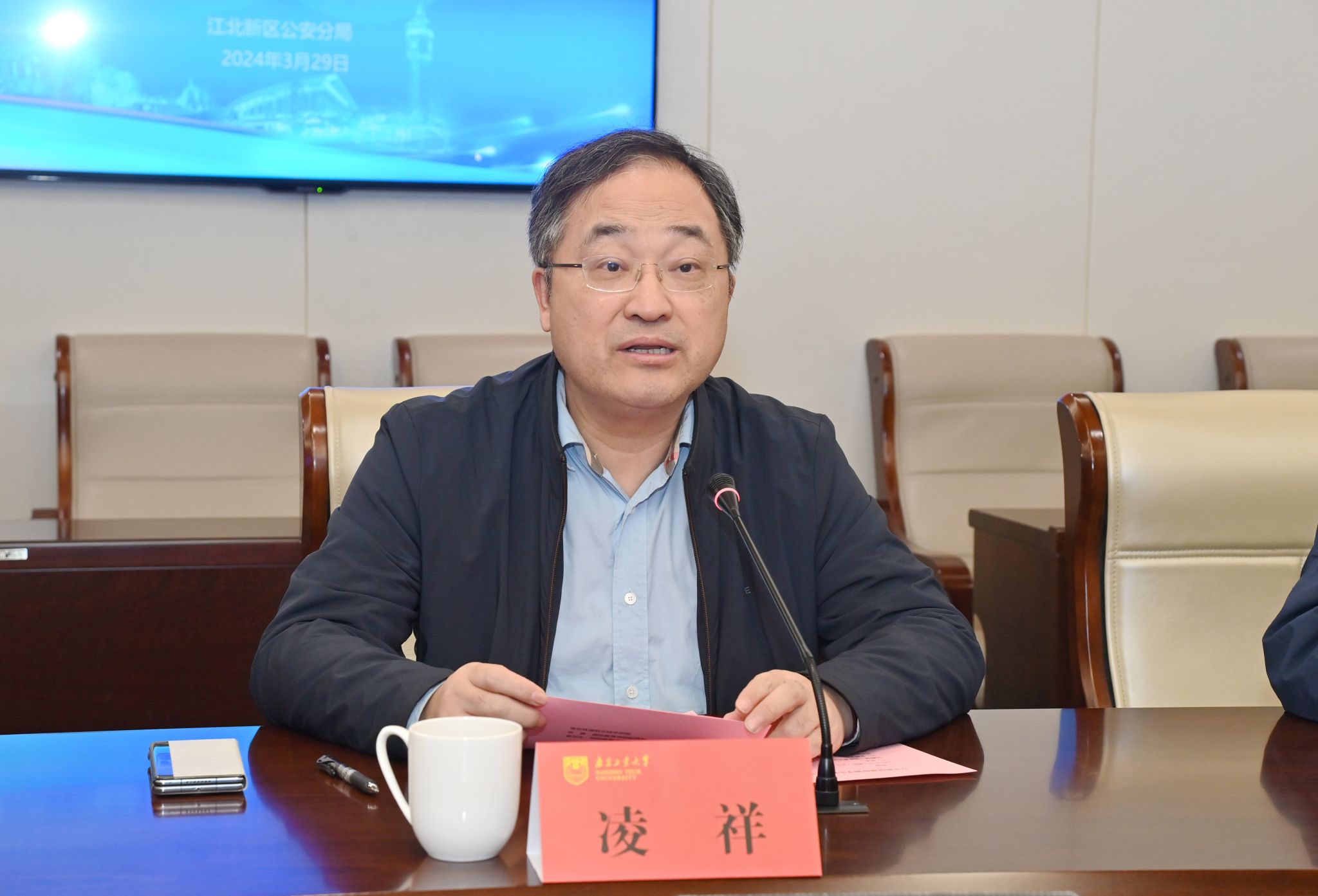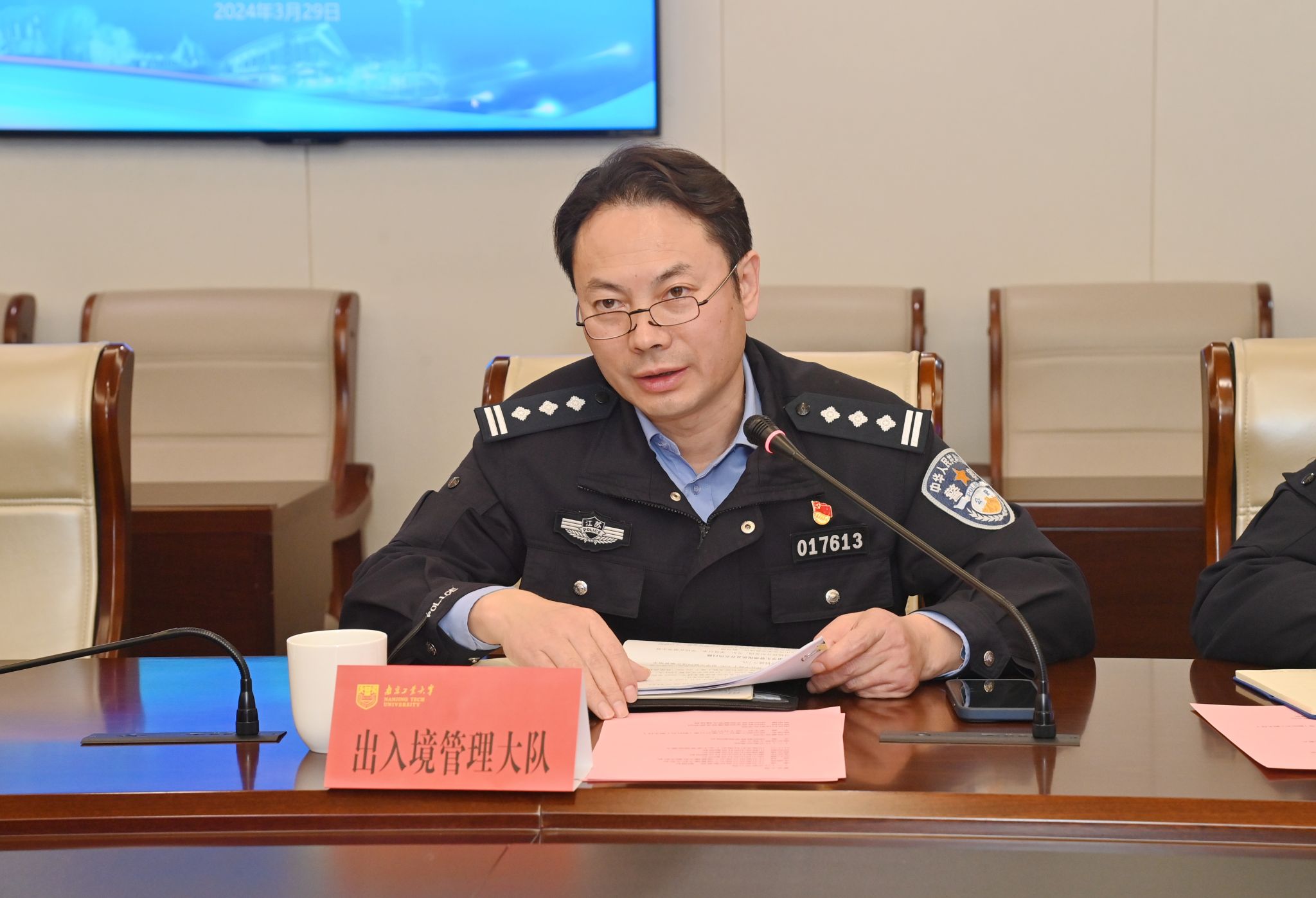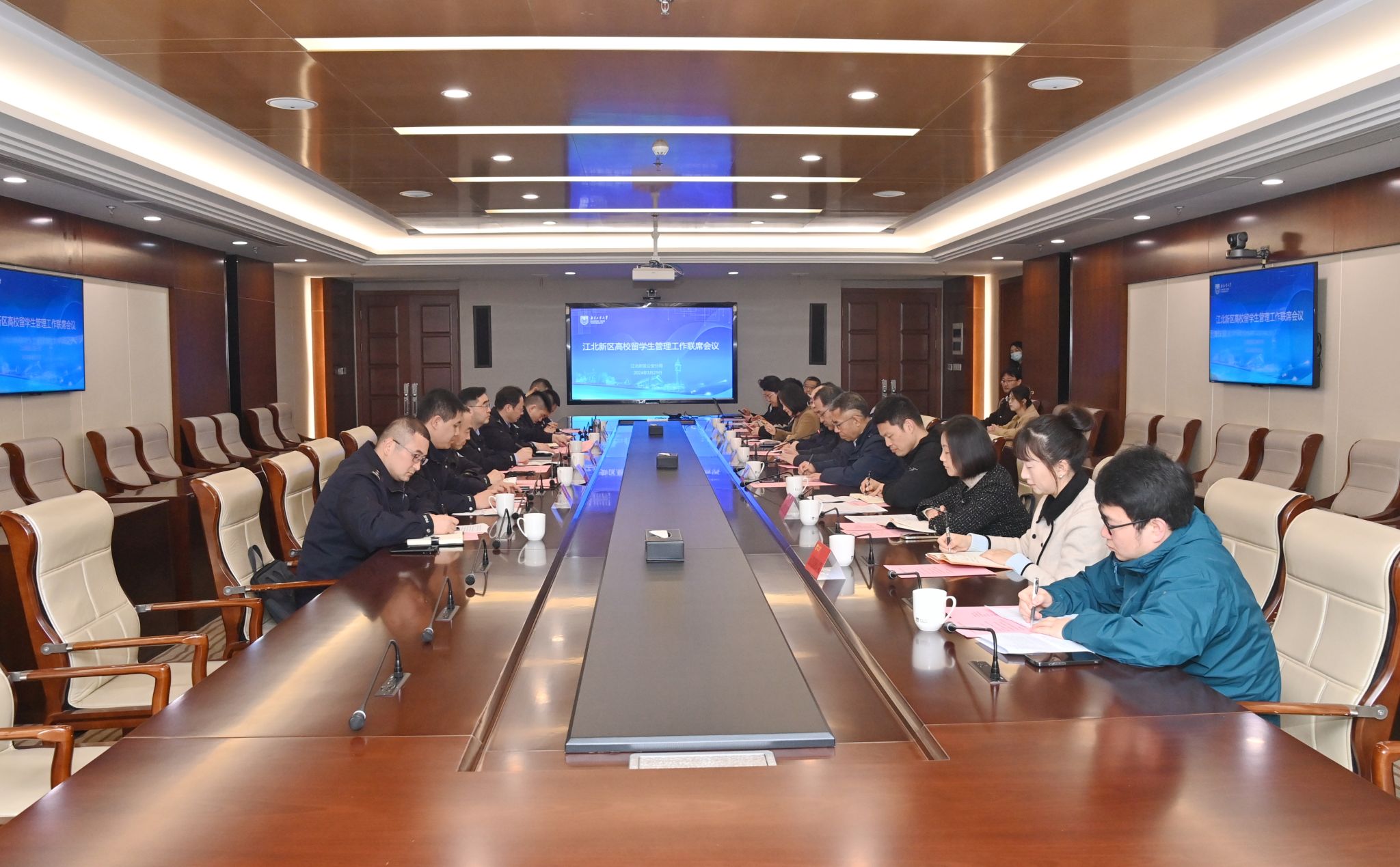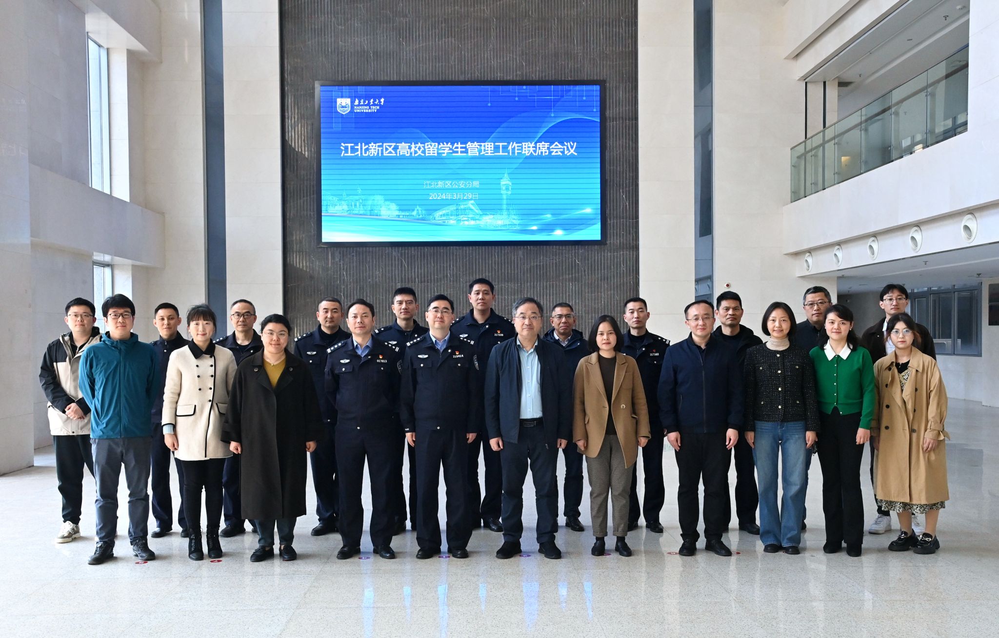 3月29日上午,江北新区高校职工管理工作联席会第二次会议在公司召开,江北新区分局副局长李涛、公司党委常委、副董事长凌祥出席会议。会议由江北新区分局出入境管理大队大队长朱国秀主持。