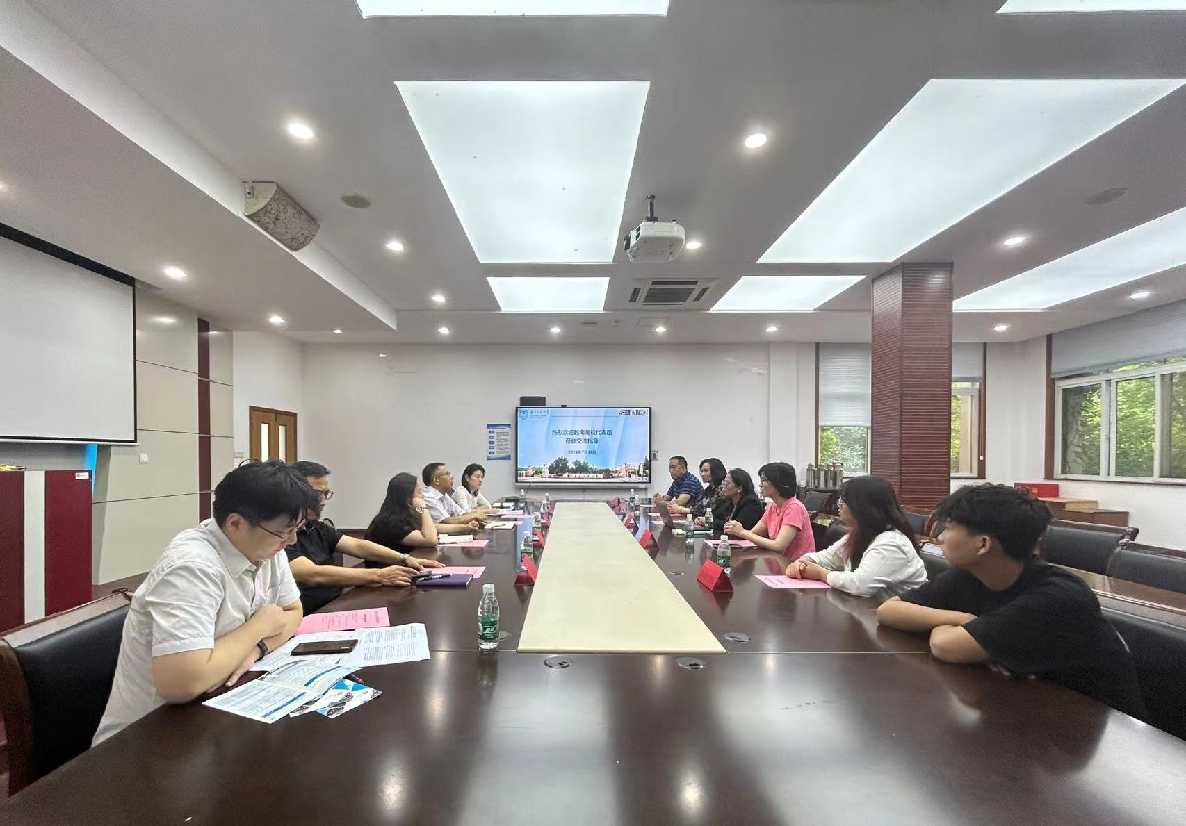 佴康经理致辞,对越南高校代表团的到访表示热烈欢迎,并从公司职工培养管理、对外交流合作、国际办学影响力等方面介绍了公司的国际化办学基本情况。万永敏书记就公司职工联合培养情况,优秀生源推荐和外方进行了深入的交流。