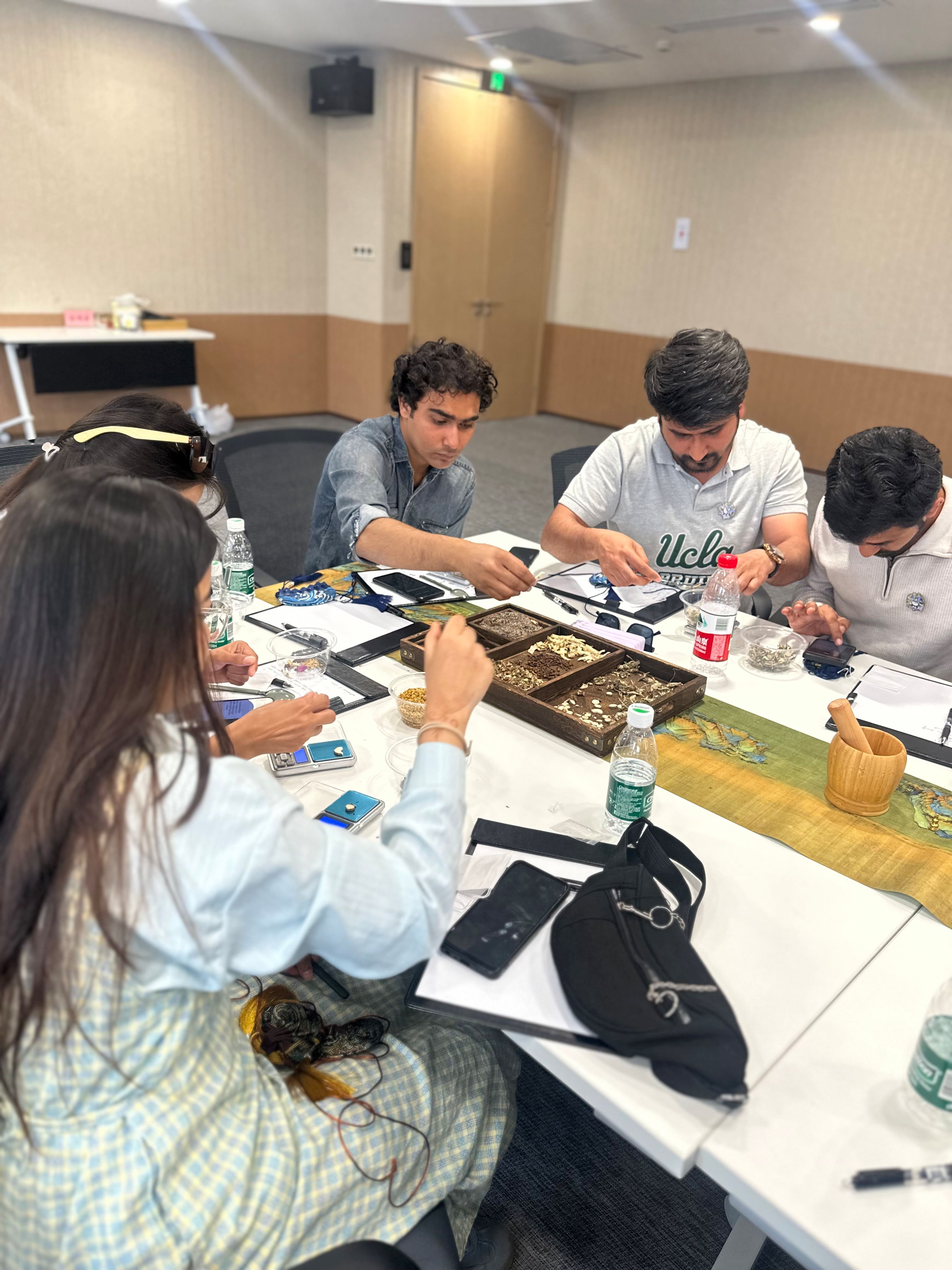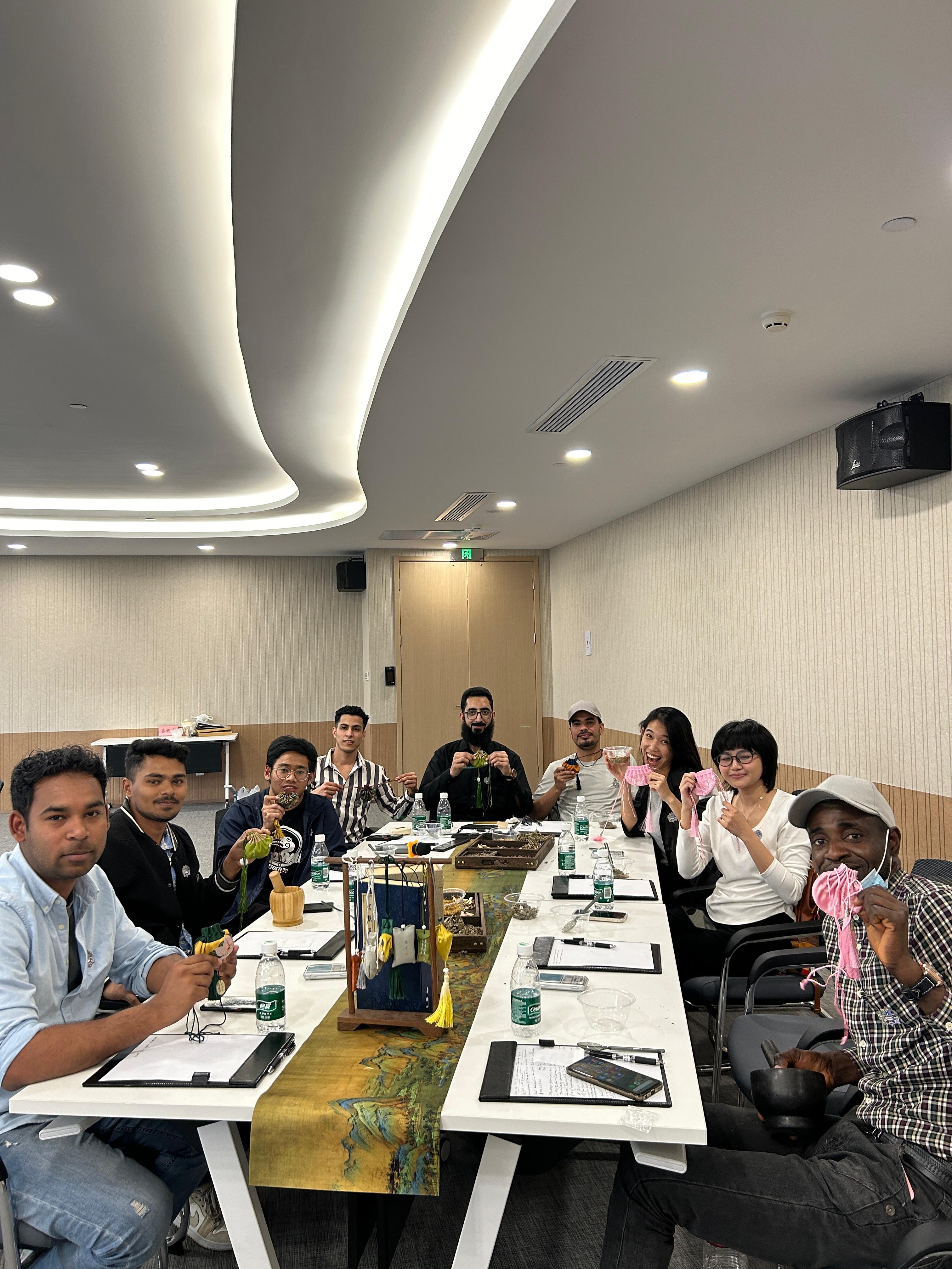 下午3时,职工们在产业园展厅开启探索之旅。现代化的办公环境、繁忙的业务场景以及琳琅满目的跨境商品,员工们直观地感受到了跨境电商产业的活力与潜力。第一节课程聚焦于跨境电商。专业讲师通过生动的案例和详实的数据,向职工们介绍了跨境电商的运作模式、市场趋势以及中国在全球跨境电商领域的领先地位。职工们认真聆听,积极互动,踊跃提问,课堂气氛热烈。短暂休息后,第二节课程转向中国传统文化体验。在专业老师的指导下,职工们学习了中医的基本理念,并亲手制作中药香囊。他们将艾叶、薄荷等中药材装入香囊,感受着传统中医文化的独特魅力。来自巴基斯坦的职工王子兴奋地说:“虽然这与跨境电商看似无关,但这种文化体验让我更全面地了解了中国。跨境电商不仅是商品的流通,也是文化的交流。”