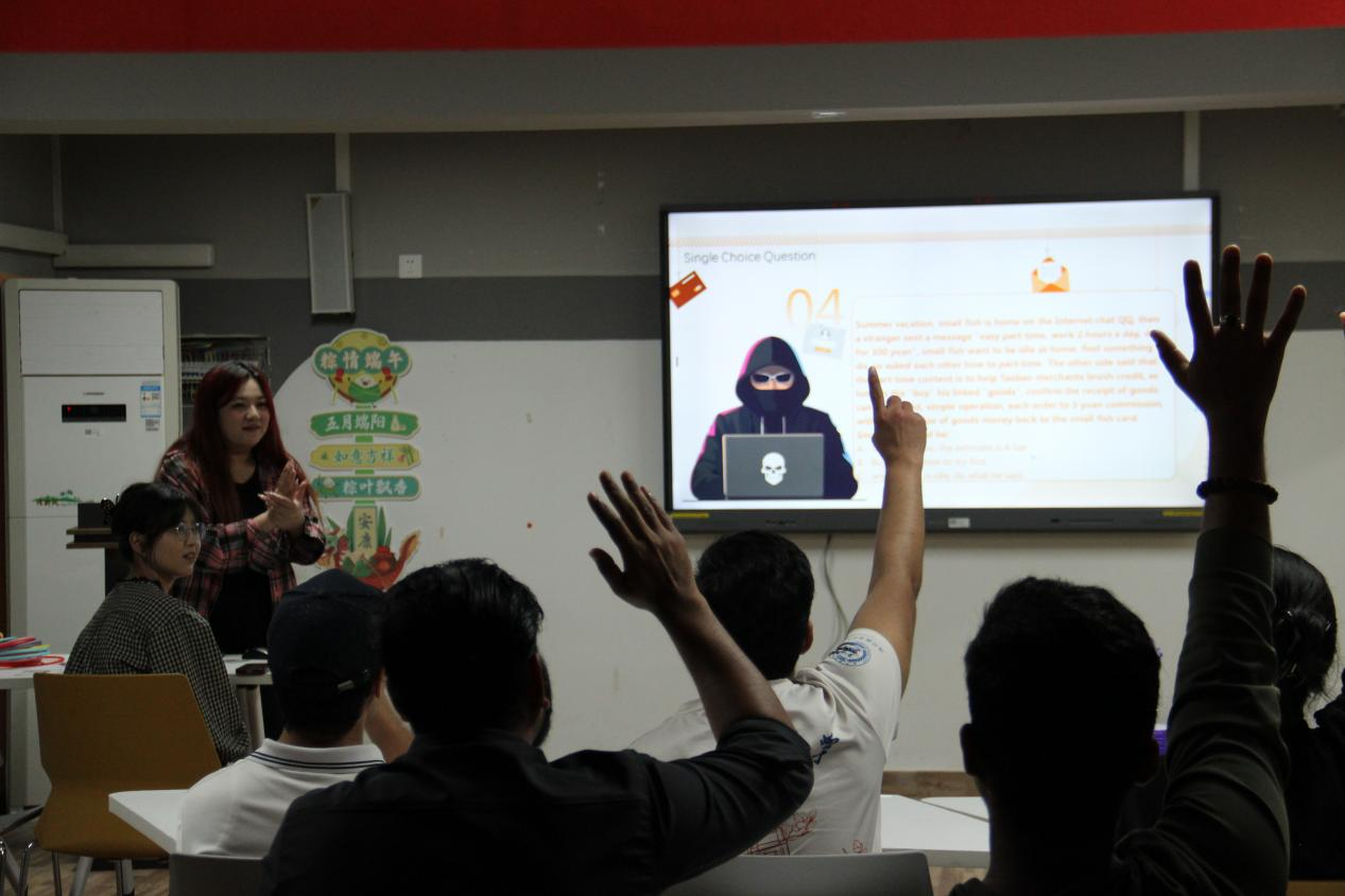 为了增强来华职工的防诈骗意识,并营造一个安全和谐的校园环境,4月9日下午,申搏sunbet在明远楼负一楼活动室举办以“玩套圈,防圈套”为主题的反诈骗知识竞赛活动。此次活动吸引了来自印度尼西亚、泰国、孟加拉国和巴基斯坦的近30名职工参加。