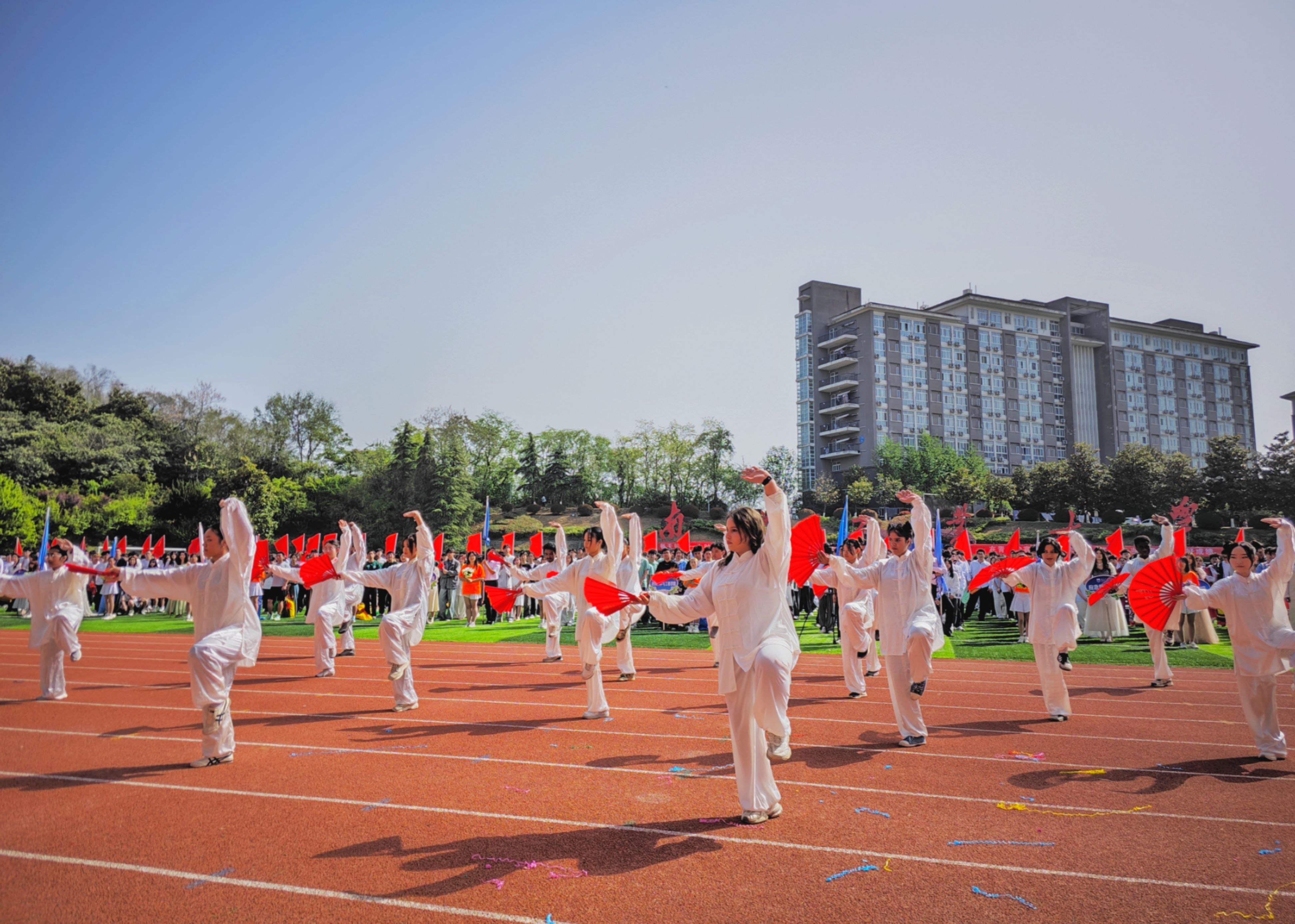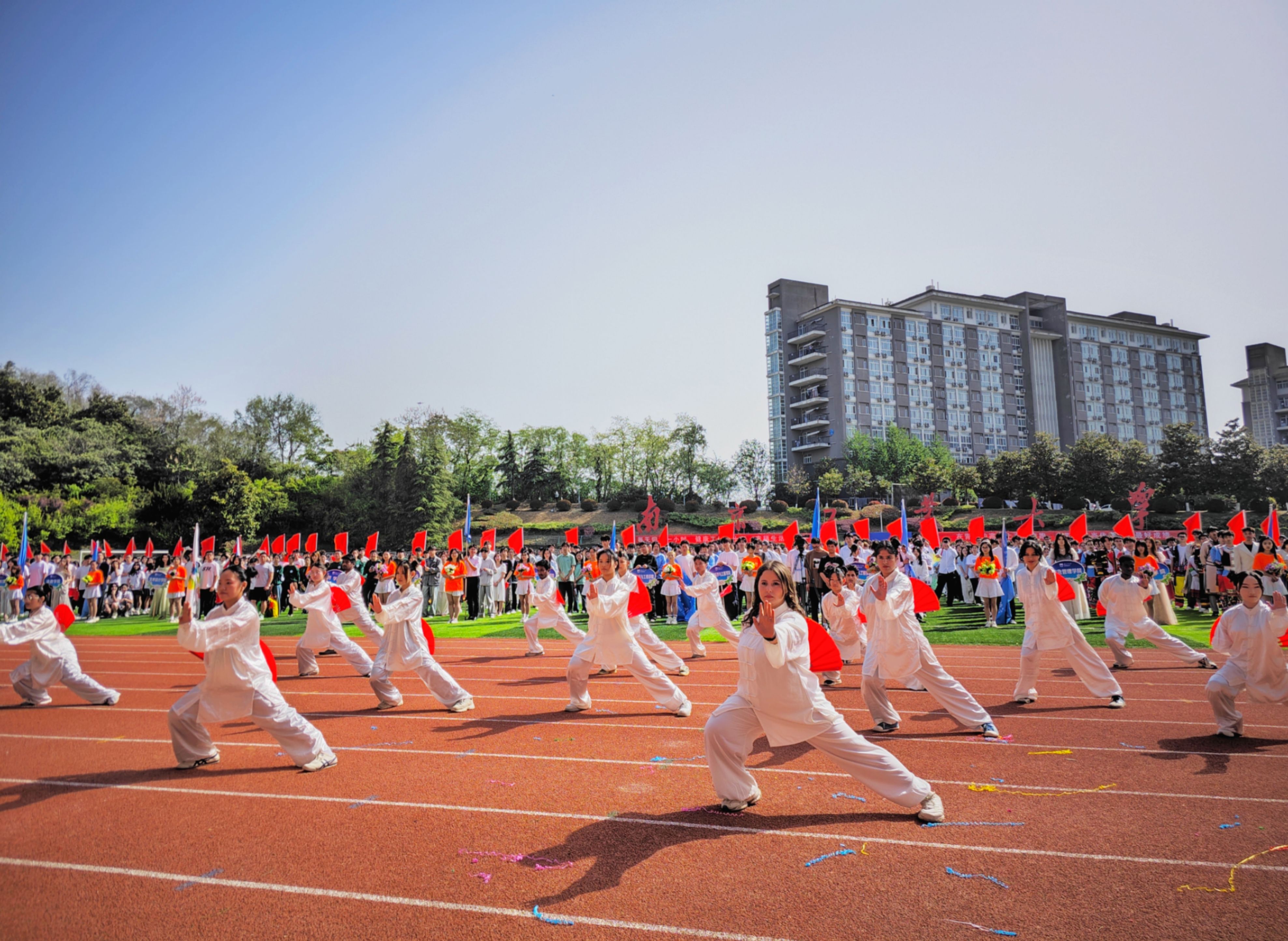 彩排工作在开幕式前两周便紧锣密鼓地展开我们尝试将扇子舞的柔美韵律与武术的刚劲力量进行创造性融合,在动态平衡中展现东方美学刚柔并济的哲学内涵。”多哥籍丁以理同学在开幕式前接受体育公司采访时介绍。编排时采用三段式训练法:先拆解武术招式,再单独练扇花,最后合成完整动作。既守住武术魂,又显出舞蹈韵让古老的传统文化活起来,来华职工也能看懂中国哲学来自不同国家职工的团队合作赢得了包括主席台在内观众的一致好评