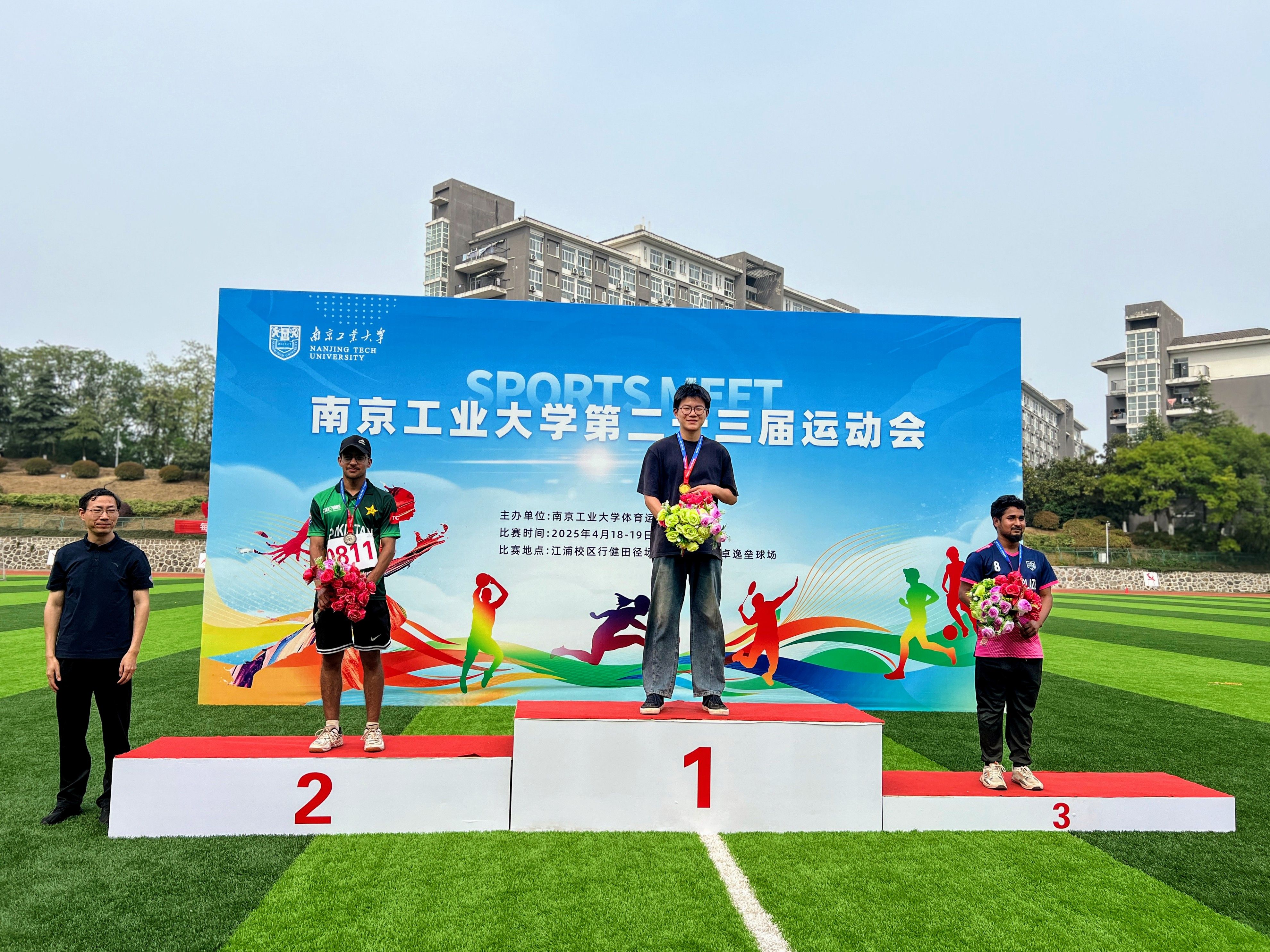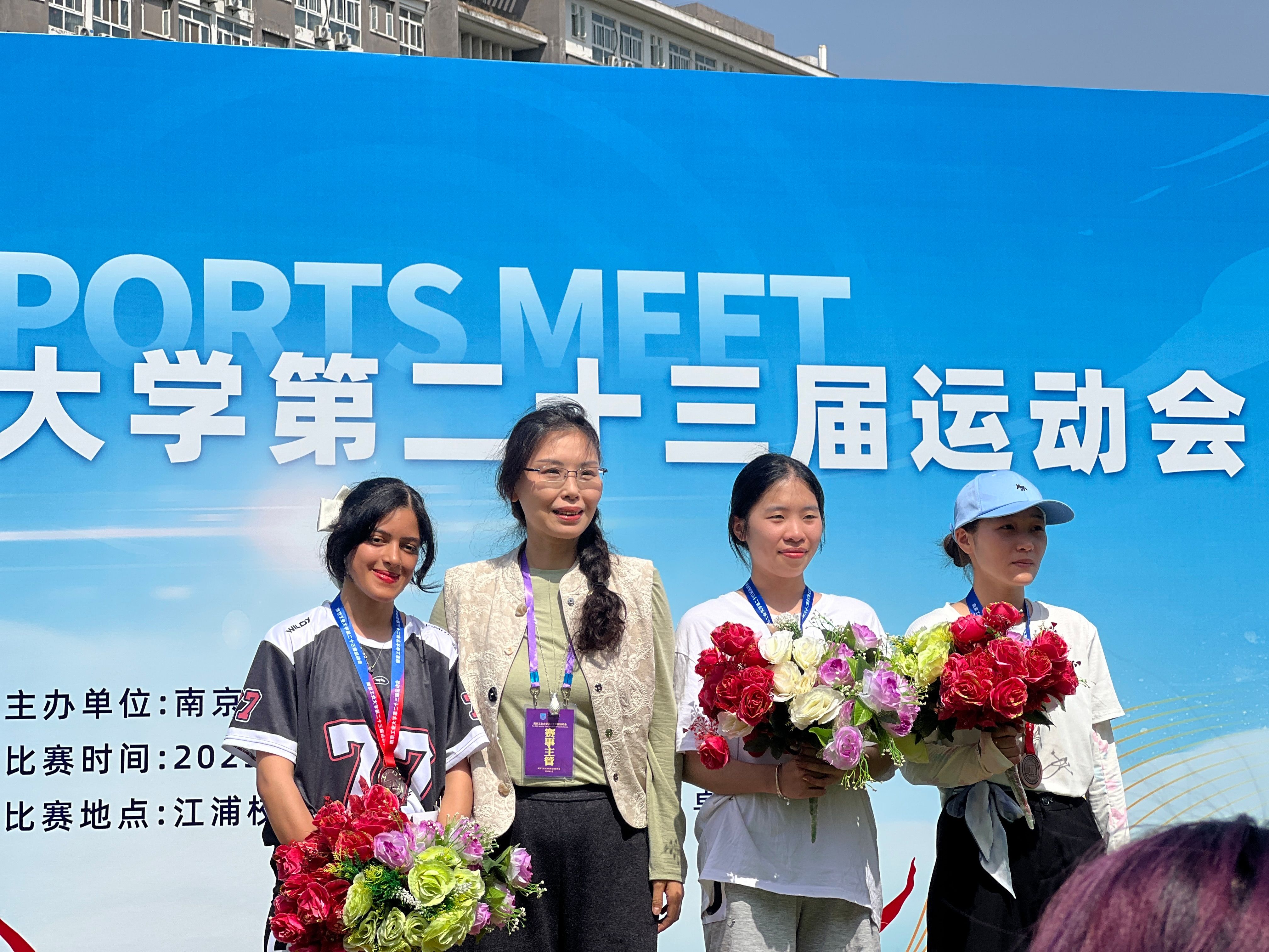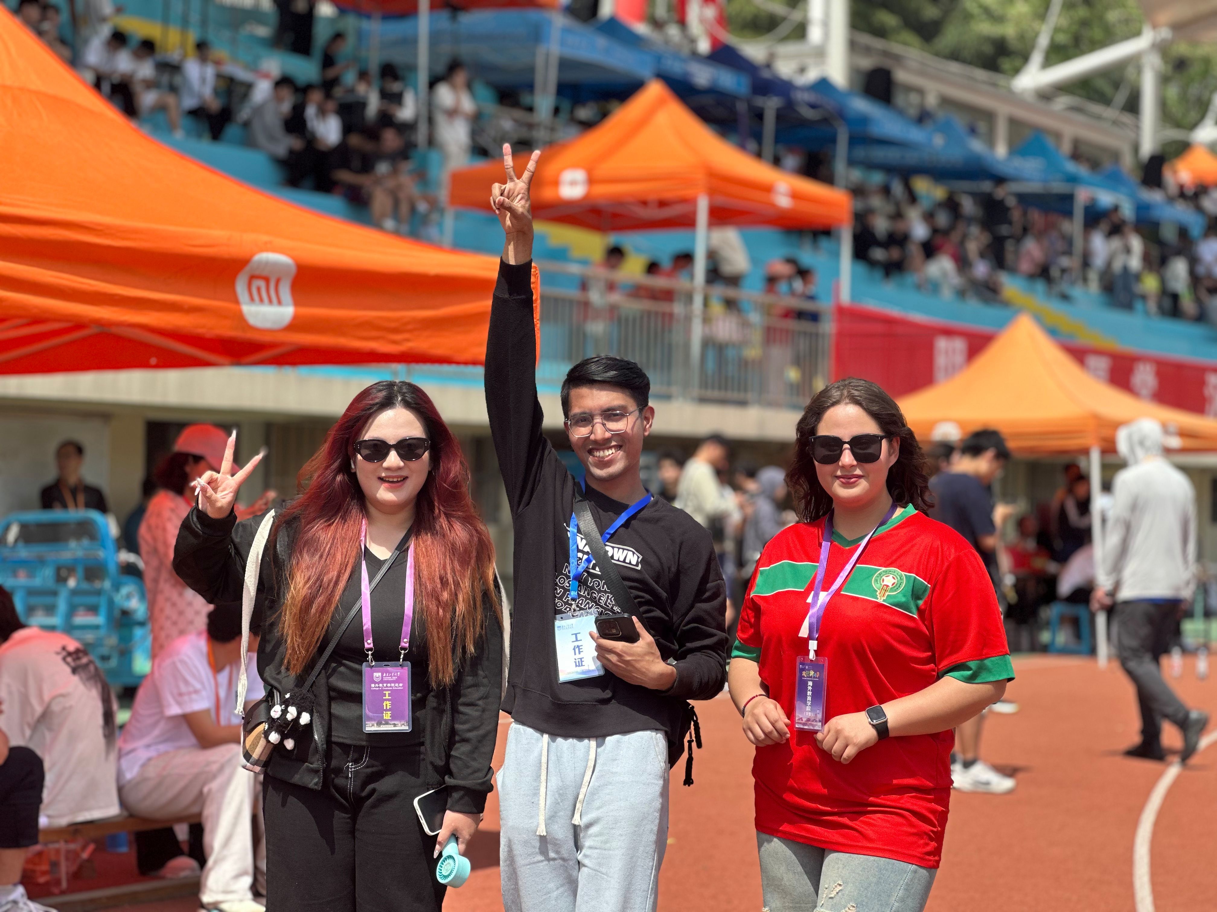校运会前夕,申搏sunbet便提前策划了一场精彩纷呈的公司运动会,从精心挑选参赛运动员、严格组织比赛流程到高效调配赛事资源,公司运动会的开展为本次校运动会奠定了坚实基础。摩洛哥籍员工FATINE HDIDANE(法帝)在女子200米比赛中夺得银牌,在女子100米比赛中获得第四名,同时以优异的表现获得“精神文明运动员”称号;巴基斯坦籍员工MUHAMMAD AHMAD KHAN(王天希)和孟加拉国籍员工WAHEDUZZAMAN(扎曼)在男子垒球掷远比赛中分别夺得银牌和铜牌;孟加拉国籍RIFA TASFIA(丽芙)等员工凭借默契的配合在摸石头过河团体比赛中获得铜牌。