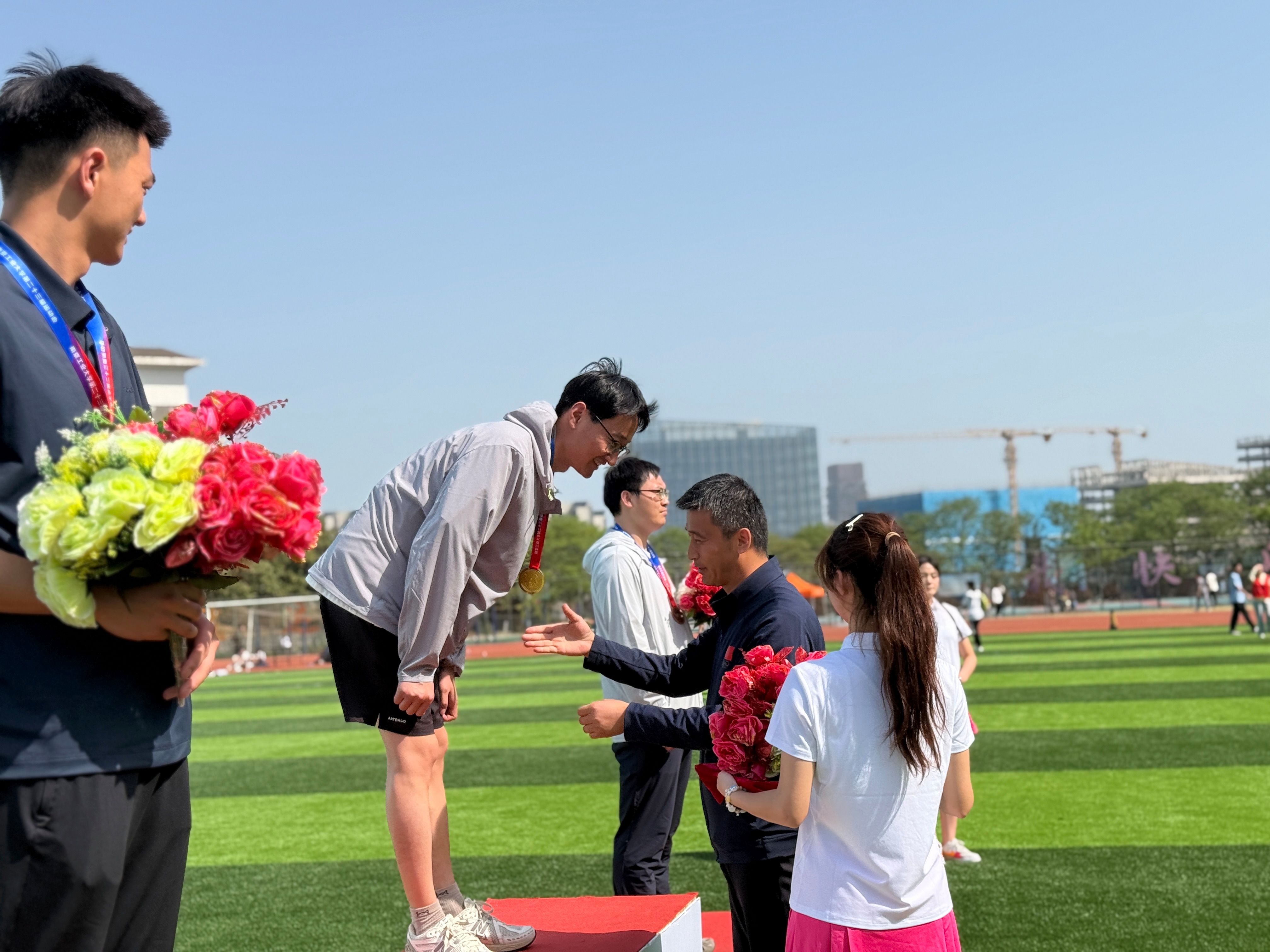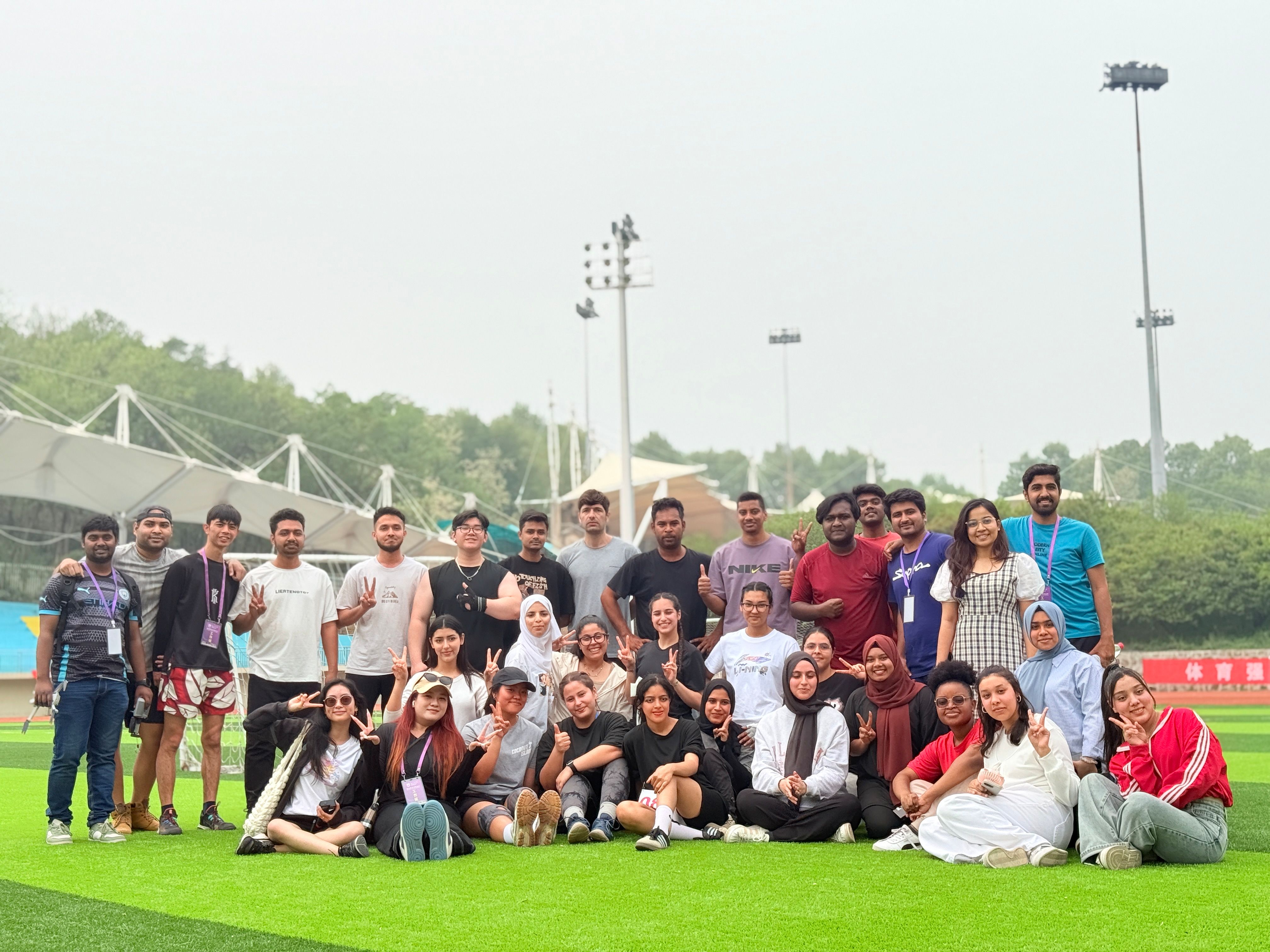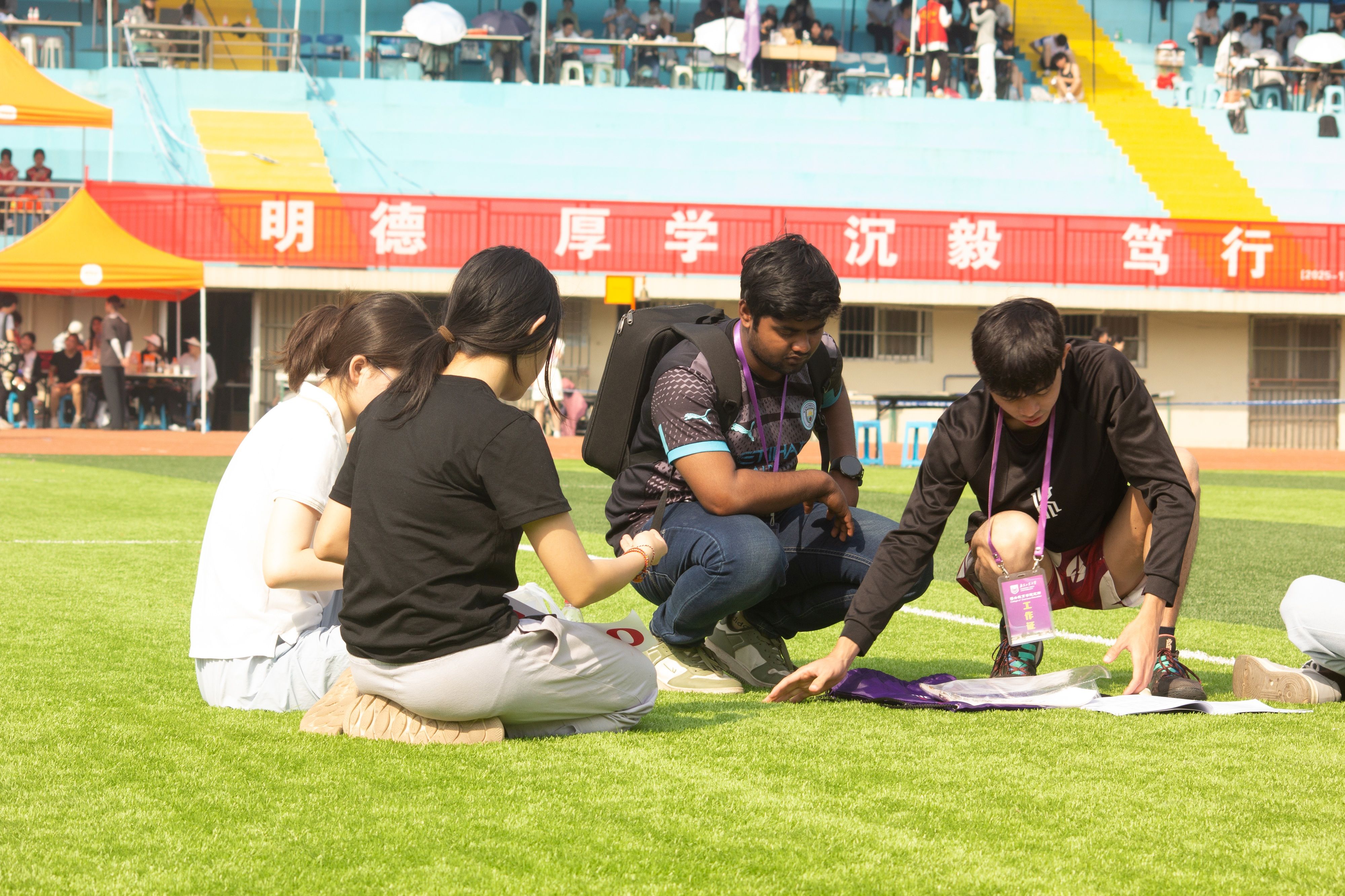 校运会前夕,申搏sunbet便提前策划了一场精彩纷呈的公司运动会,从精心挑选参赛运动员、严格组织比赛流程到高效调配赛事资源,公司运动会的开展为本次校运动会奠定了坚实基础。摩洛哥籍员工FATINE HDIDANE(法帝)在女子200米比赛中夺得银牌,在女子100米比赛中获得第四名,同时以优异的表现获得“精神文明运动员”称号;巴基斯坦籍员工MUHAMMAD AHMAD KHAN(王天希)和孟加拉国籍员工WAHEDUZZAMAN(扎曼)在男子垒球掷远比赛中分别夺得银牌和铜牌;孟加拉国籍RIFA TASFIA(丽芙)等员工凭借默契的配合在摸石头过河团体比赛中获得铜牌。