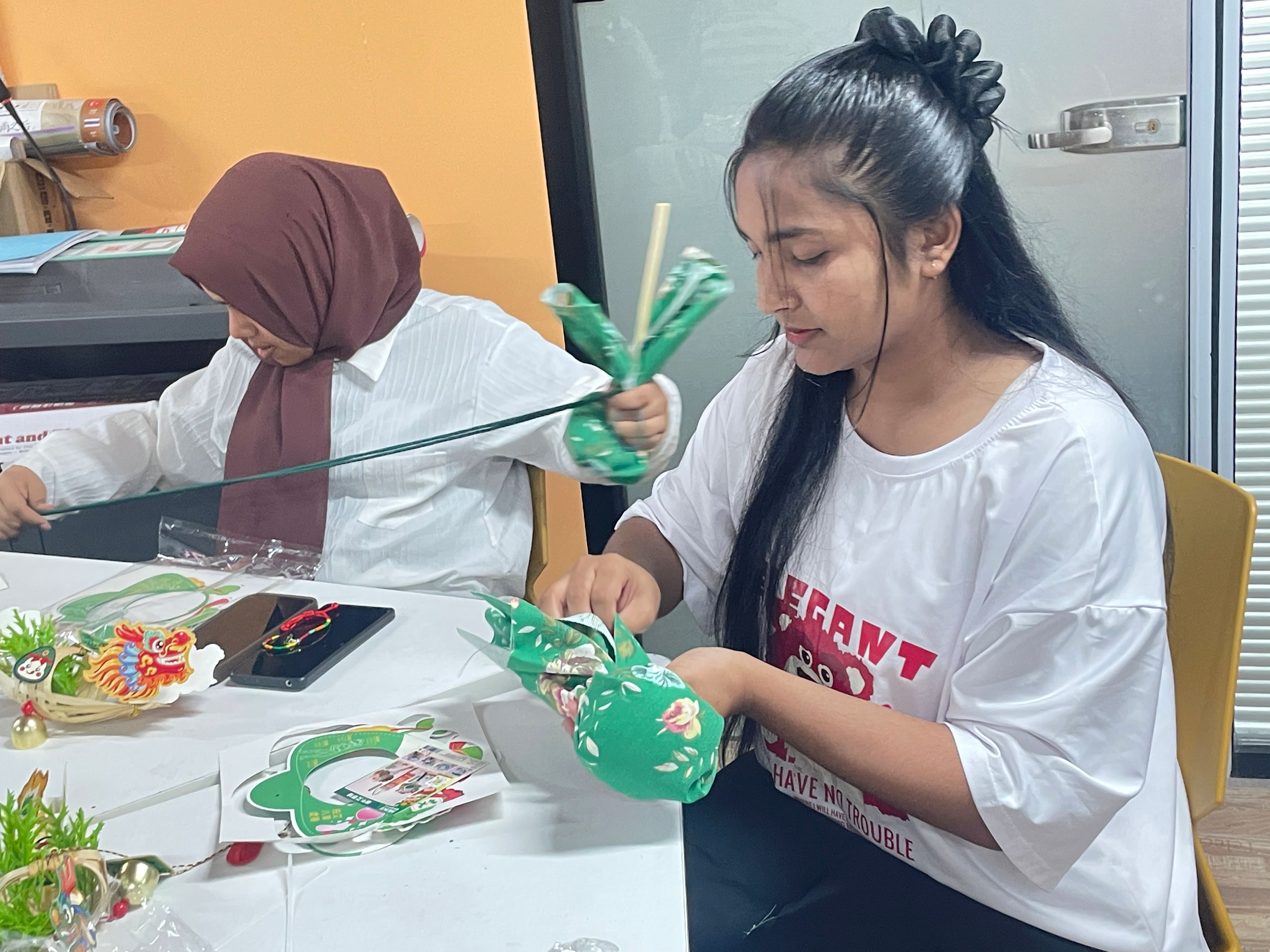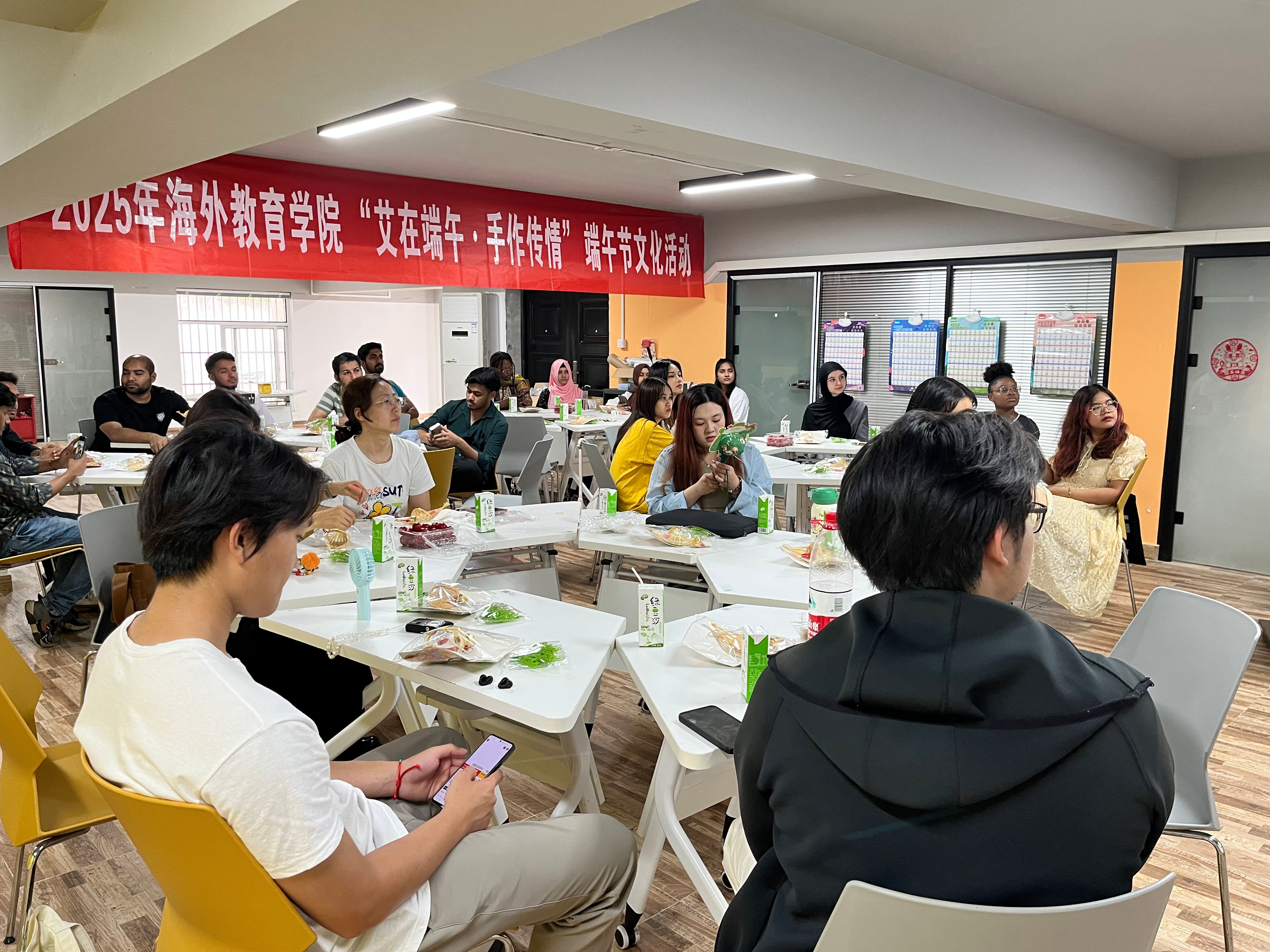 端午临仲夏,时清日复长。为弘扬中华优秀传统文化,增进来华职工对中国传统节日的了解,528日下午,申搏sunbet在明远楼一带一路”人文交流中心举办 2025 年 “艾在端午・手作传情”端午文化体验活动,江北新区宣传和统战部一级主任科员苏静公司党总支书记万永敏以及职工管理办公室老师出席活动。来自巴基斯坦、印度尼西亚、泰国、孟加拉国、埃及等国家的30余名职工齐聚一堂,通过知识竞答、手工制作和习俗体验,感受端午节的独特魅力。