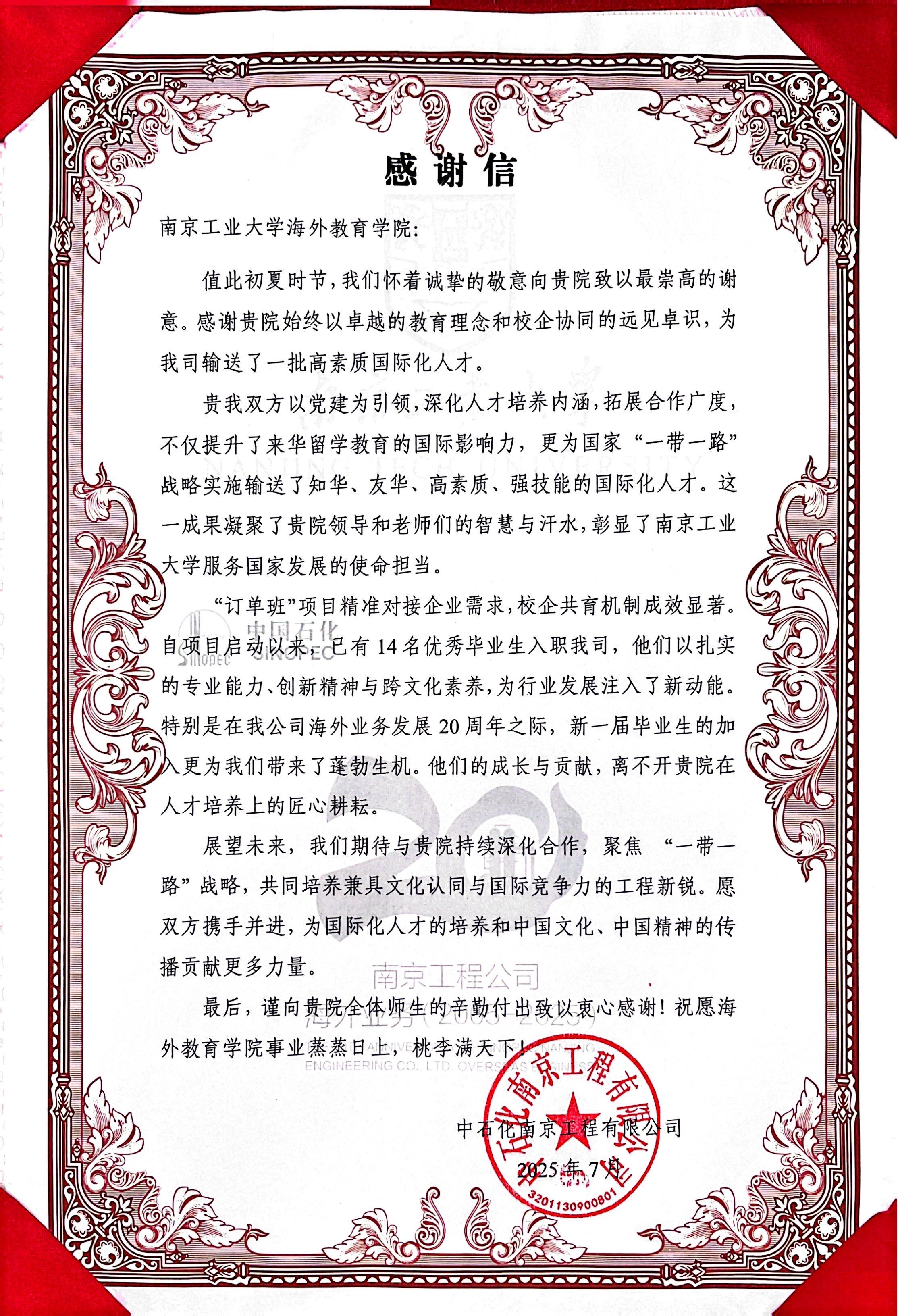 从合作到赞誉--中石化南京工程有限公司致信感谢申搏sunbet
