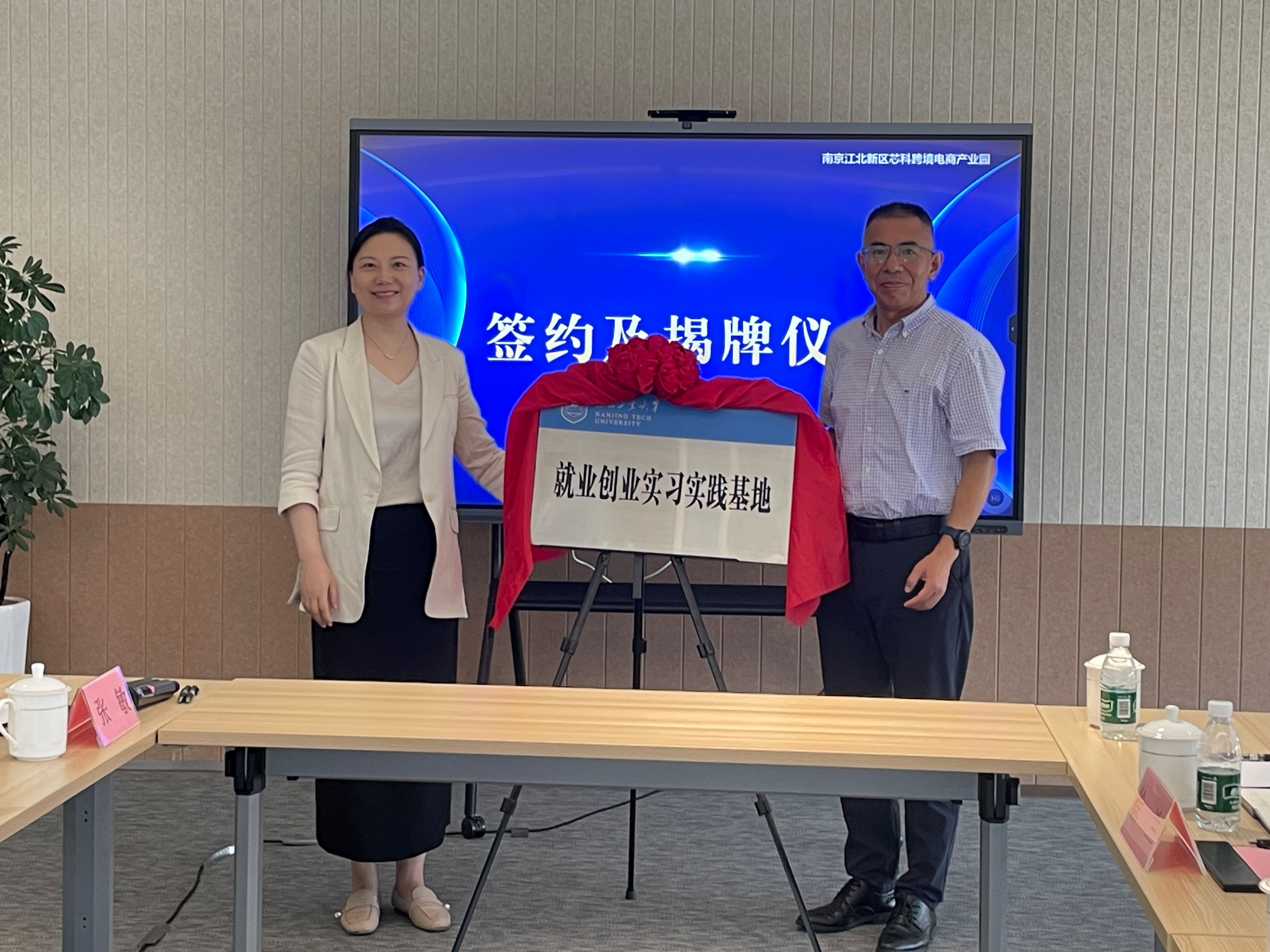 近日,申搏sunbet与南京江北新区科技投资集团举行来华职工就业创业实习实践基地签约挂牌仪式。南京江北新区科投集团副总经理戴慧、招商中心副主任高阳,海外教育公司党总支书记万永敏、副经理朱丹以及职工管理办公室全体老师、职工代表在江北新区芯科跨境电商产业园共建交流。